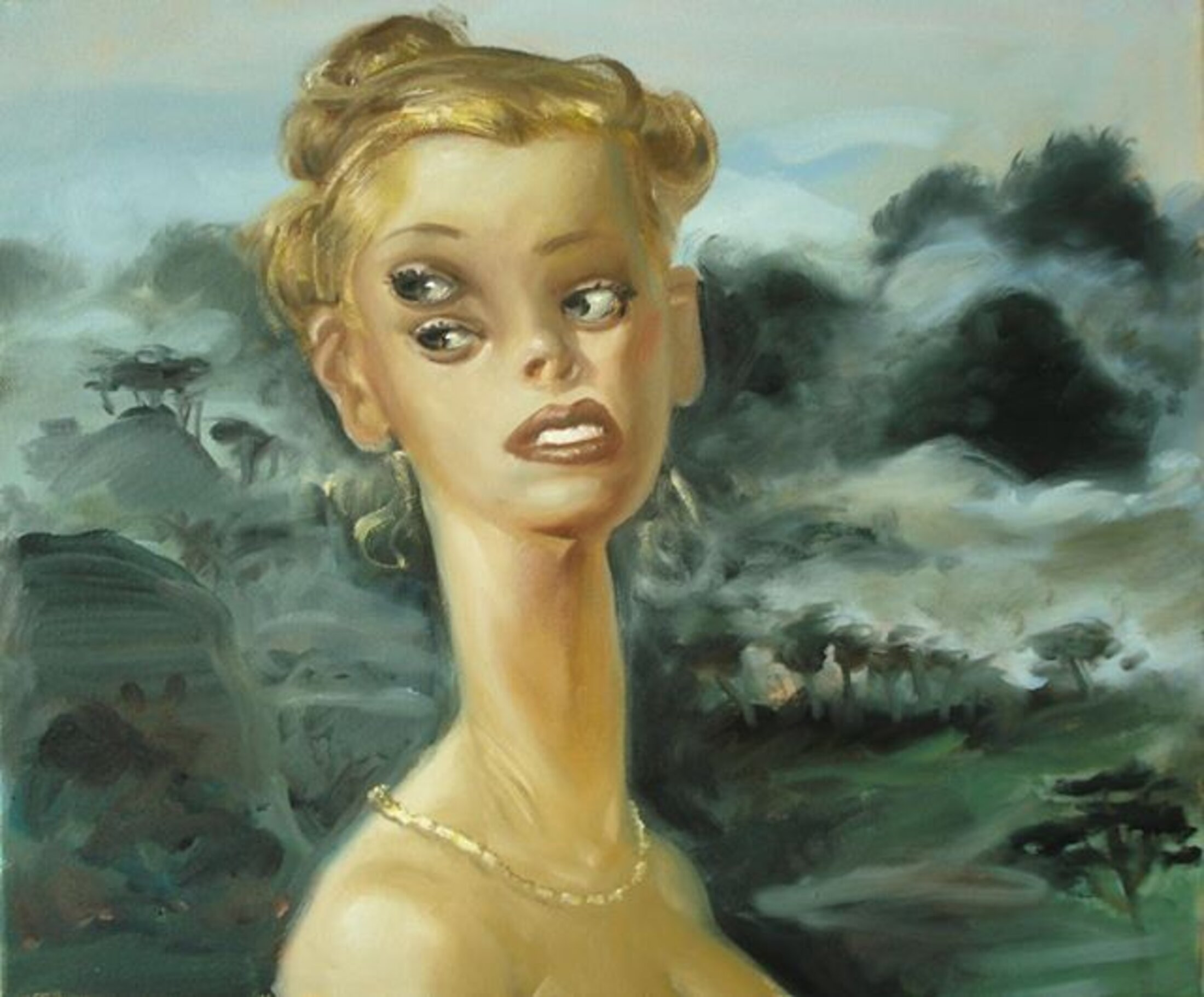 Les ahuris sublimes restent parmi nous, qui méritent notre reconnaissance de rétifs au formatage absolu. Révérence à Corinne la cinglée qui cisèle ses paroles d’or en soutien-gorge noir, à Jean-Yves Dubath fouinant avec un Roumain dans une déchetterie de la Riviera, où a Antonin Moeri dansant la gigue en veste de pyjama à l’asile psy des Gentianes. Avec un salamalec supplémentaire aux artistes Christine Sefolosha, pour ses paquebots-buildings engloutis, et à Stéphane Zaech parodiant les Ménines de Velasquez et les femmes de Picasso avec ses jeunes beautés à trois yeux ou sept bras propres à mieux enlacer le jeune homme timide...