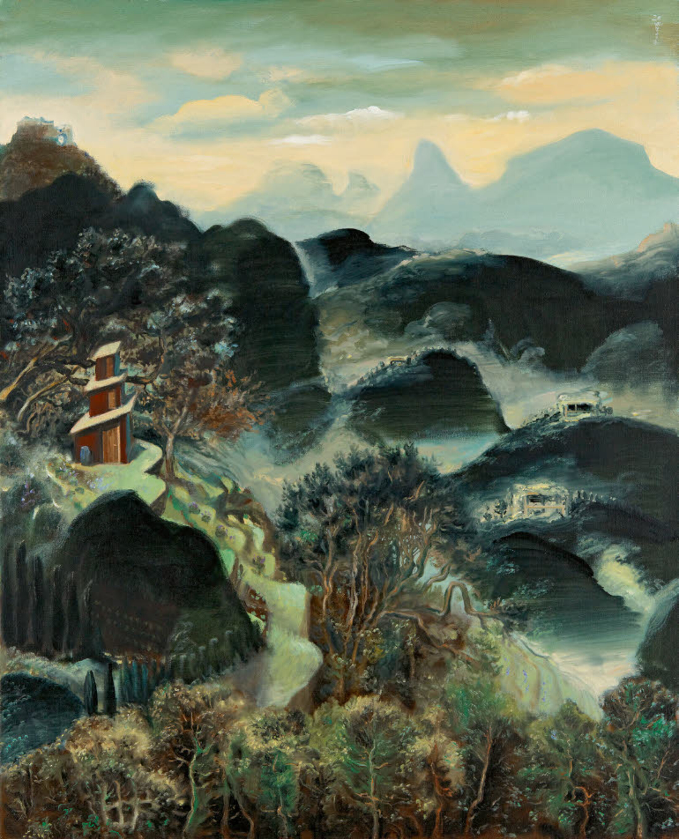A cet égard, le réalisme fantastique marquant les grands paysages de Stéphane Zaech, où l’on voit des jungles foisonnantes jouxter des monts enneigés à la manière chinoise, sur les hauts de Montreux, entre visions érotiques et figures peinturlurées de chefs indiens en costumes baroques, ne le cède en rien aux visions oniriques d’une Christine Sefolosha, notoire «outsider» saturant ses hautes feuilles de figures animales ou humaines en un bestiaire rappelant les murs de Lascaux ou les rêves éveillés de certains surréalistes, de Max Ernst à Leonor Fini – l’inspiratrice présumée de Julius.