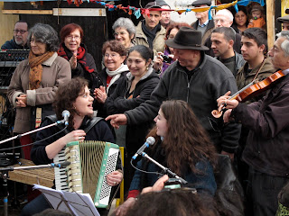 Chants de femmes traditionnels Yiddish et Roms. Devant le rabbin de Ris-Orangis et les compagnons d'Emmaüs, au sein du bidonville Rom de Ris-Orangis, Miléna Kartowski et Eva Salina Primack ont entamé, le 7 mars 2013 leur tournée européenne. Deux voix qui se répondent, faisant face à l'inimaginable. Des chants sans frontière ont éclaté, et repoussé au loin la violence sans nom qui ne cesse de menacer. En images, des témoignages de ce front merveilleux. http://perou-risorangis.blogspot.fr/2013/03/place-forte.html