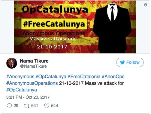 Les hackers d'Anonymous ont lancé aujourd'huil'opération 'Operation Free Catalonia' en bloquantles sites du PP, du Tribunal Constitutionnel et de diverses entreprises espagnoles. D'autres hackers sont également passés à l'action aujourd'hui. Cliquer ici
