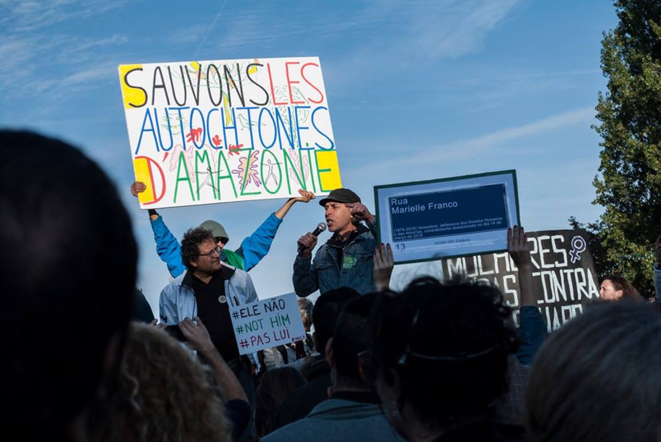 A Paris, un rassemblement massif a déjà eu lieu le 20 octobre. Des représentant.e.s brésilien.ne.s du mouvement LGBTQI, du mouvement noir, du mouvement féministe, du MST et des alliés des peuples autochtones ont pris la parole à tour de rôle. Le groupe Femmes unies contre Bolsonaro a rappelé que dans les dernières semaines de la campagne électorale plus de 70 agressions ont été dénombrées. Une représentante du MST, après avoir évoqué la double oppression des femmes noires, a également affirmé la lutte du mouvement pour un monde plus humain et plus juste dans lequel "toutes les formes d’amour valent la peine ».