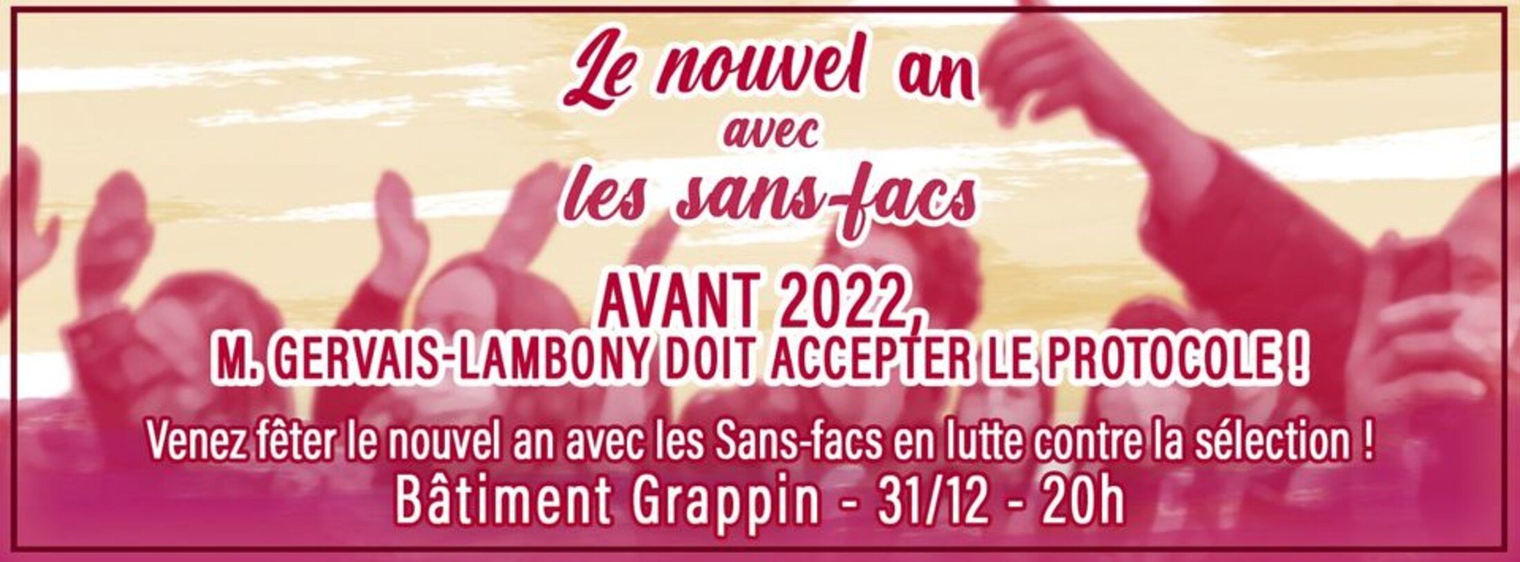 Mon message de fin d'année: si vous ne pouvez pas aller faire la Fête du nouvel an à Nanterre avec les sans facs et leurs soutiens, versez au moins à leur cagnotte. Ils sont déterminés à poursuivre la lutte contre la casse de l'éducation publique et la sélection qui l'accompagne.
