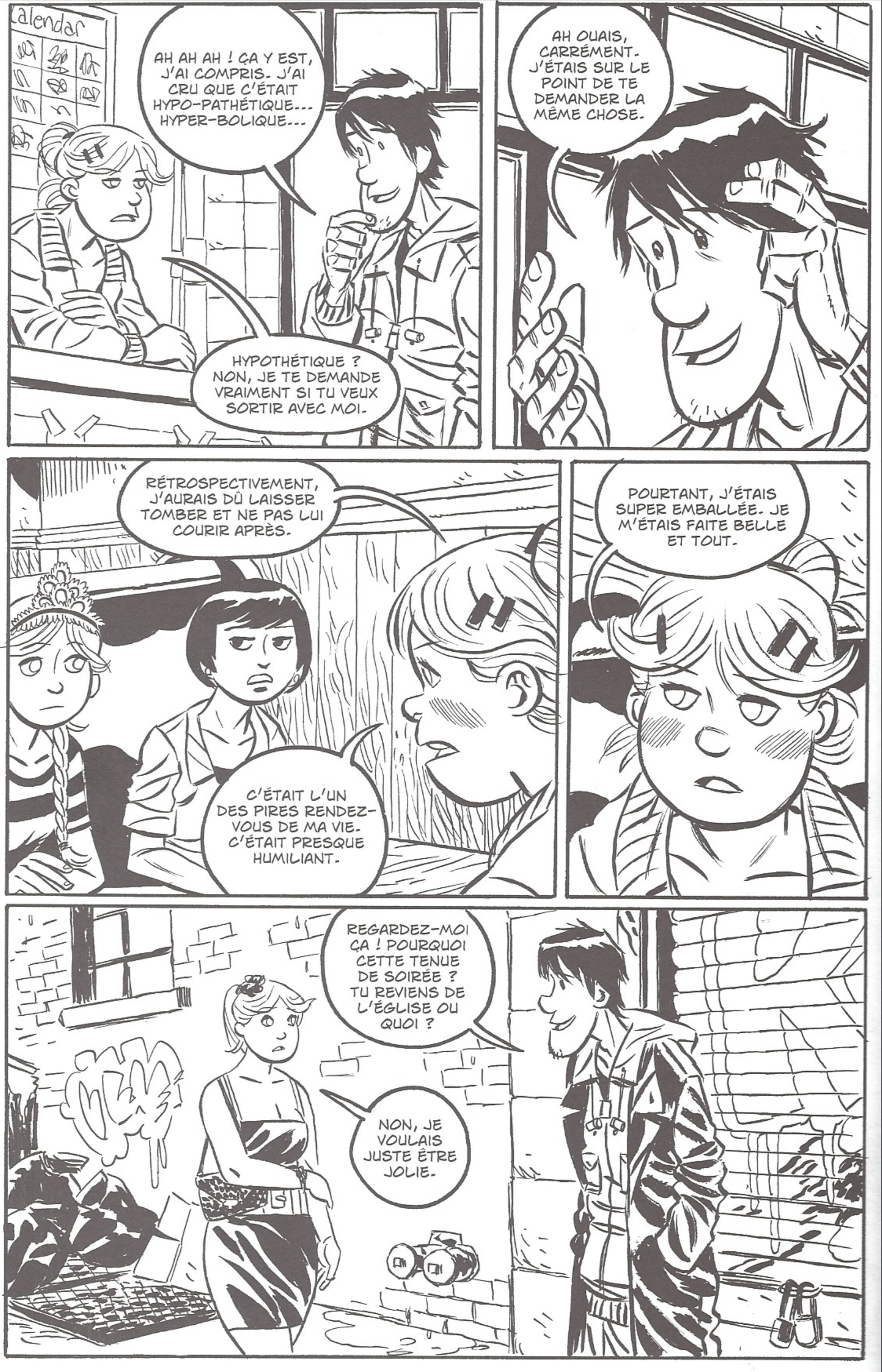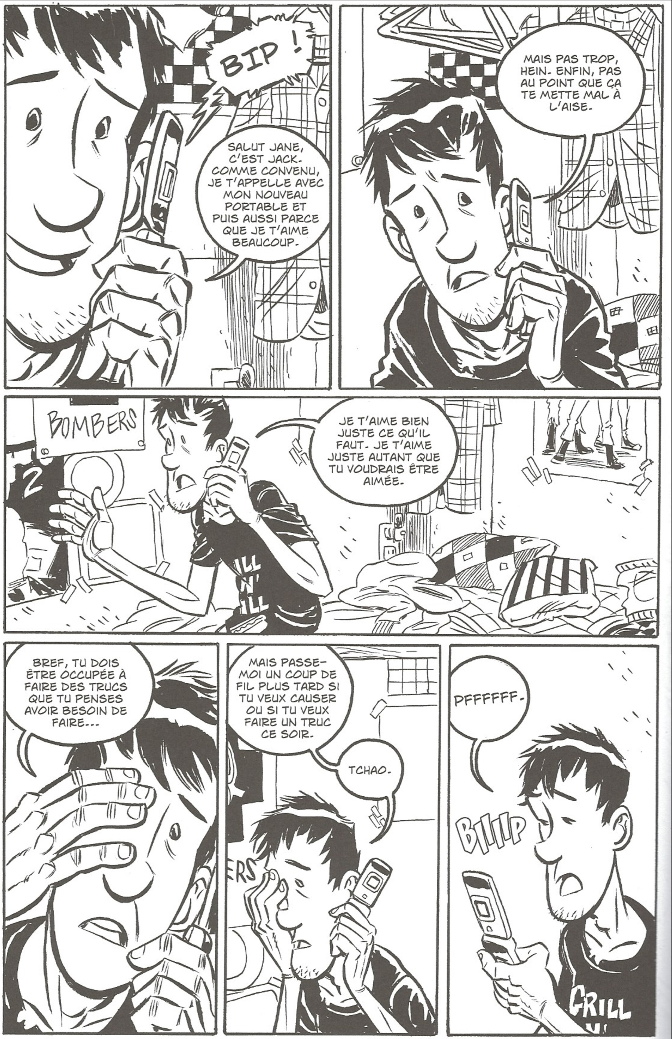 Jane est fan de skate, bosse dans le skate, se casse la figure en skate, mais elle est vraiment balèse quand-même. Elle est à Brookport depuis quelques mois seulement. (Elle bourlingue un peu). Jack vend de la soupe avec un petit commerce ambulant que son patron dépose le matin et reprend le soir au moyen d’une fourgonnette. Il est complètement dans la lune, un peu glandeur et très gaffeur. Son intelligence est cachée. Elle n’apparaît qu’épisodiquement, parce qu’il ne cherche pas à la faire valoir. Mais elle est bien là ! Et aussi la sensibilité qui va avec. C’est important, parce qu'à Brookport, il y a un réseau des super-nanas, destiné à informer chacune sur les mecs graves à éviter ! Et pour « sauver » Jane, Jack va être balancé, pris pour cible… Une sorte d’inquisition va avoir lieu, on va faire rencontrer Jane et des ex de Jack, pour bien lui faire comprendre quel abruti il est. L'œuvre est aussi un essai sur la "pression sociale".