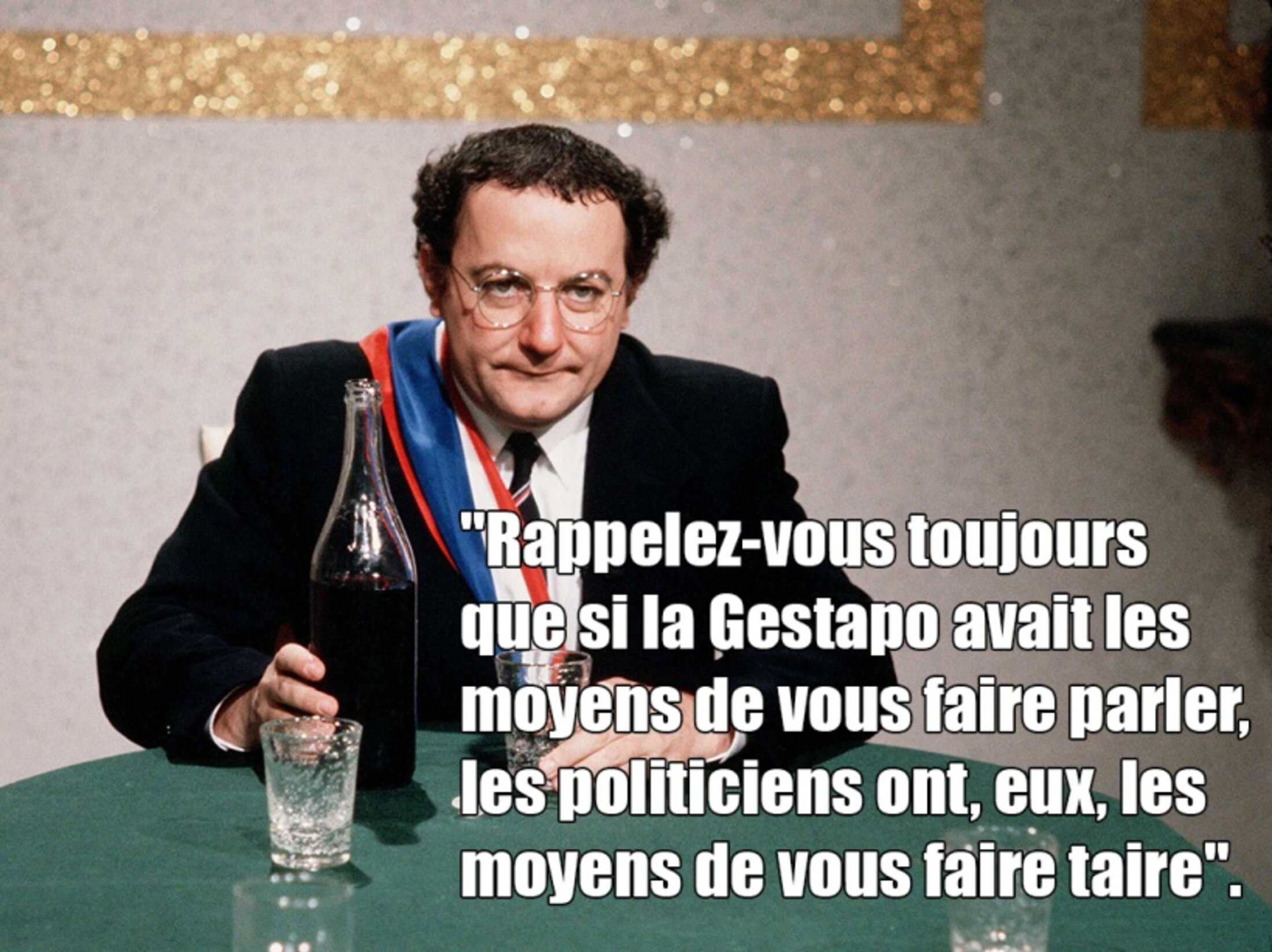 Bon. En fait, l’élection de 1981 est marquante à d’autres titres, surtout un : 16 % d’intentions de votes pour un clown gai. Et puis le non-engagement final du clown. Ses dires : « menaces, de toutes part ». De tous partis. Et puis son apostrophe à Mitterrand (je ne me souviens Pas Verbatim, Mais En Substance), c’était « sa carrière, s'il savait où on s'la met ! ». Le « Où est passé not’pognon ? » (de dingue). Le Droit de réponse « Faut-il tuer Coluche ». Et puis 1986, bien sûr. Putain de camion. Le soupçon.