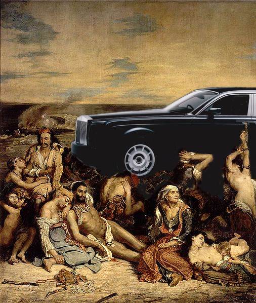 Le massacre de Scio en Grèce (Eugène Delacroix) transposé à notre époque.