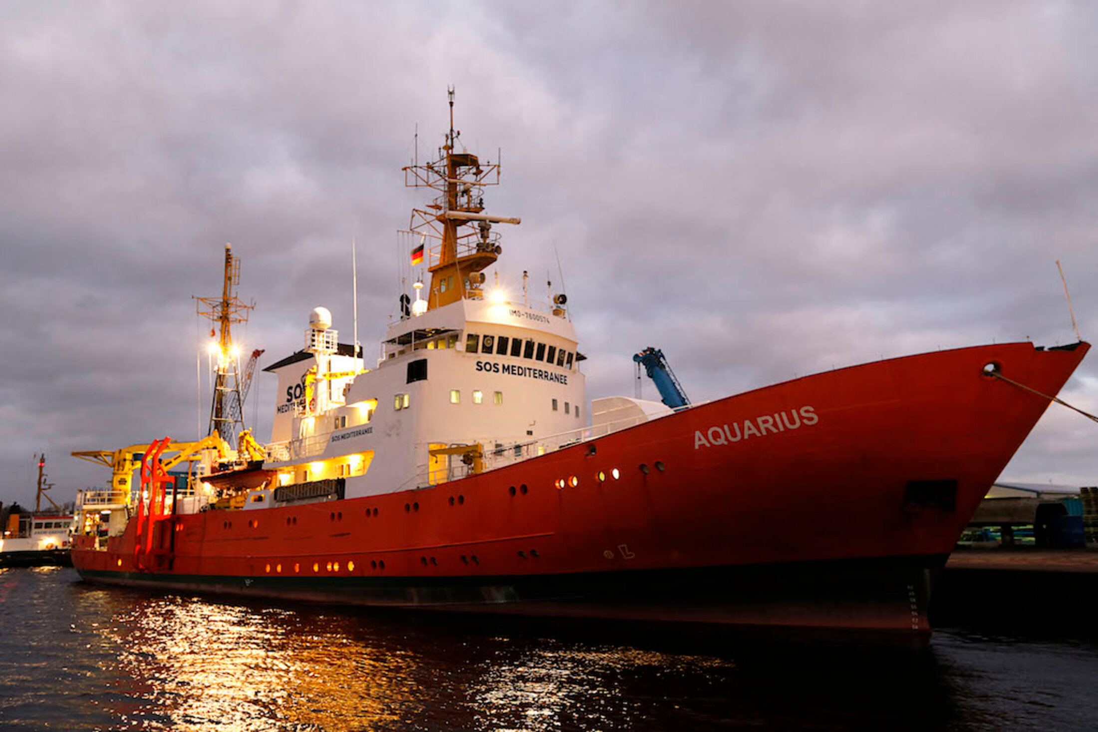 J’ai découvert un animal puissant et docile, lourd de plus de 1800 tonnes équipé de quatre générateurs et d’un moteur de 2300 kw qui le fait ronronner comme un gros chat. Précisément, en passant les doigts sur son nom fraîchement repeint, l’ « Aquarius », j’ai retrouvé son ancienne appellation martelée sur la tôle blindée : « Meerkatze ». Quelque chose en allemand comme « mer-chat », un félin de la mer, un fauve, mais aussi le nom allemand d’un singe rare qu’on trouve au cœur des forêts de Nouvelle-Guinée.