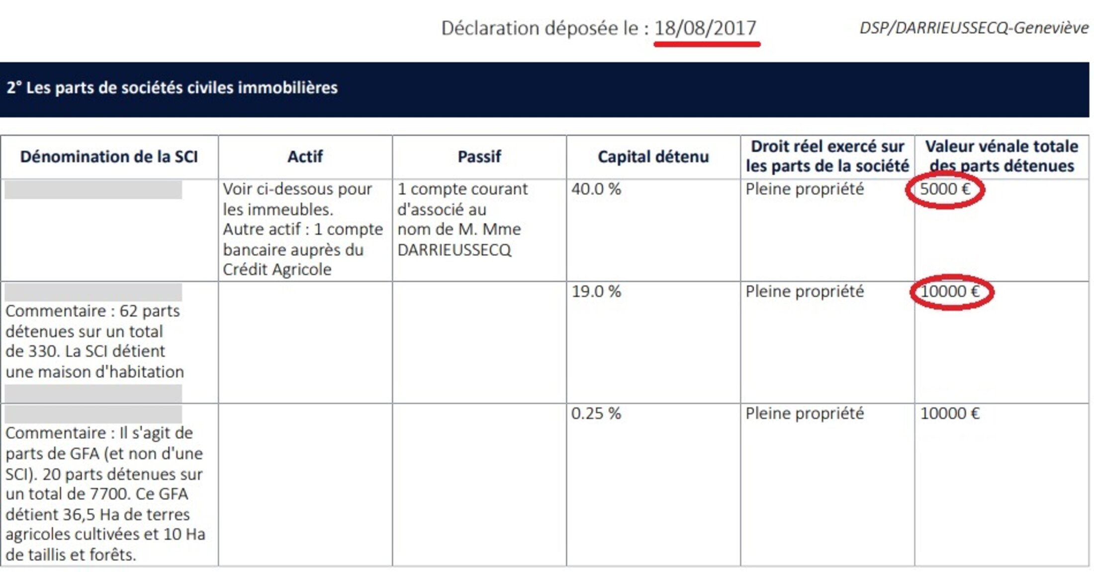 Ainsi, lorsqu'à l'occasion de son accession au gouvernement en juin 2017, elle a fourni les éléments de son patrimoine à la Haute autorité pour la transparence de la vie publique (HATVP), elle avait estimé ses parts de SCI au quart de leur valeur (25 000 € au lieu de 106 268 €).