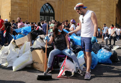 Une armée de volontaires nettoie le centre-ville de Beyrouth Une armée de volontaires est descendue lundi aux petites heures du matin dans les rues du centre-ville de Beyrouth pour les nettoyer des déchets abandonnés par les dizaines de milliers de manifestants présents la veille pour protester contre la crise socio-économique et le pouvoir politique. Tous les déchets sont triés par les dizaines de volontaires présents.