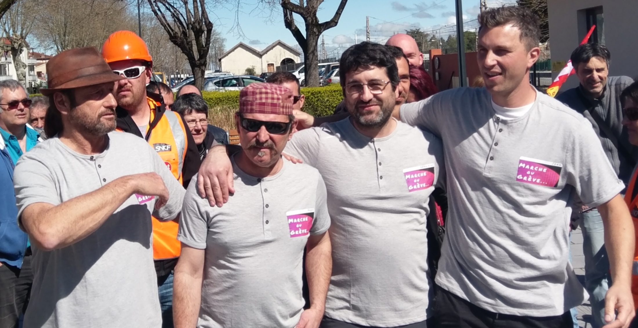 Après avoir bloqué la gare de Foix le 3 avril dernier, investi le péage de l'autoroute de Pamiers le dimanche 8 avril pour une action de sensibilisation des usagers au mouvement national de grève à la SNCF, les cheminot-e-s ont mené une "Opération escargot" sur la RN 20 de Foix jusqu'à Pamiers ce lundi 9 avril. Ils ont ensuite tenu leur Assemblée Générale à la gare de Pamiers devant leurs soutiens. Puis, quatre cheminots ont commencé leur marche de Pamiers jusqu'au Palais de l’Elysée à Paris : arrivée le 8 mai !