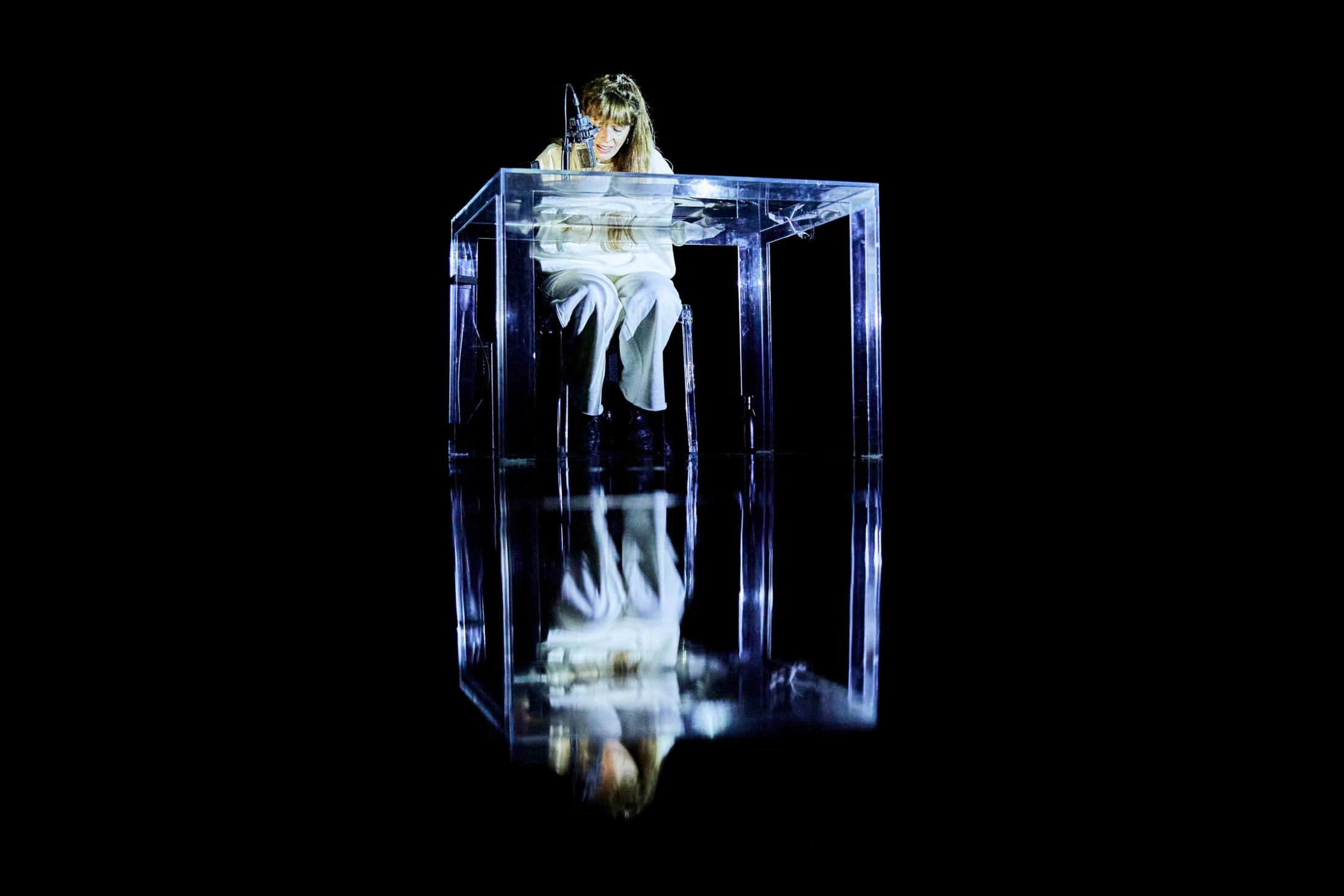 Théâtre Ouvert a confié ce texte à Céleste Germe, metteure en scène des spectacles de la compagnie Das Plateau dont Maëlys Ricordeau est une actrice permanente de la compagnie depuis le début. Quel rôle allait-elle interpréter, Laura ou Salomé ? Les deux. Une idée forte. « Confier à Maëlys Ricordeau les deux rôles permettrait de faire entendre plus perceptiblement la manière dont Marine Chartrain les avait écrits,en reflets l’un de l’autre, miroir et miroir inversé, à la fois identiques et opposés ». Deux voix venant d’une même gorge, sœurs et opposées. Cet exploit, l’actrice le maintien de bout en bout avec dextérité et délicatesse.