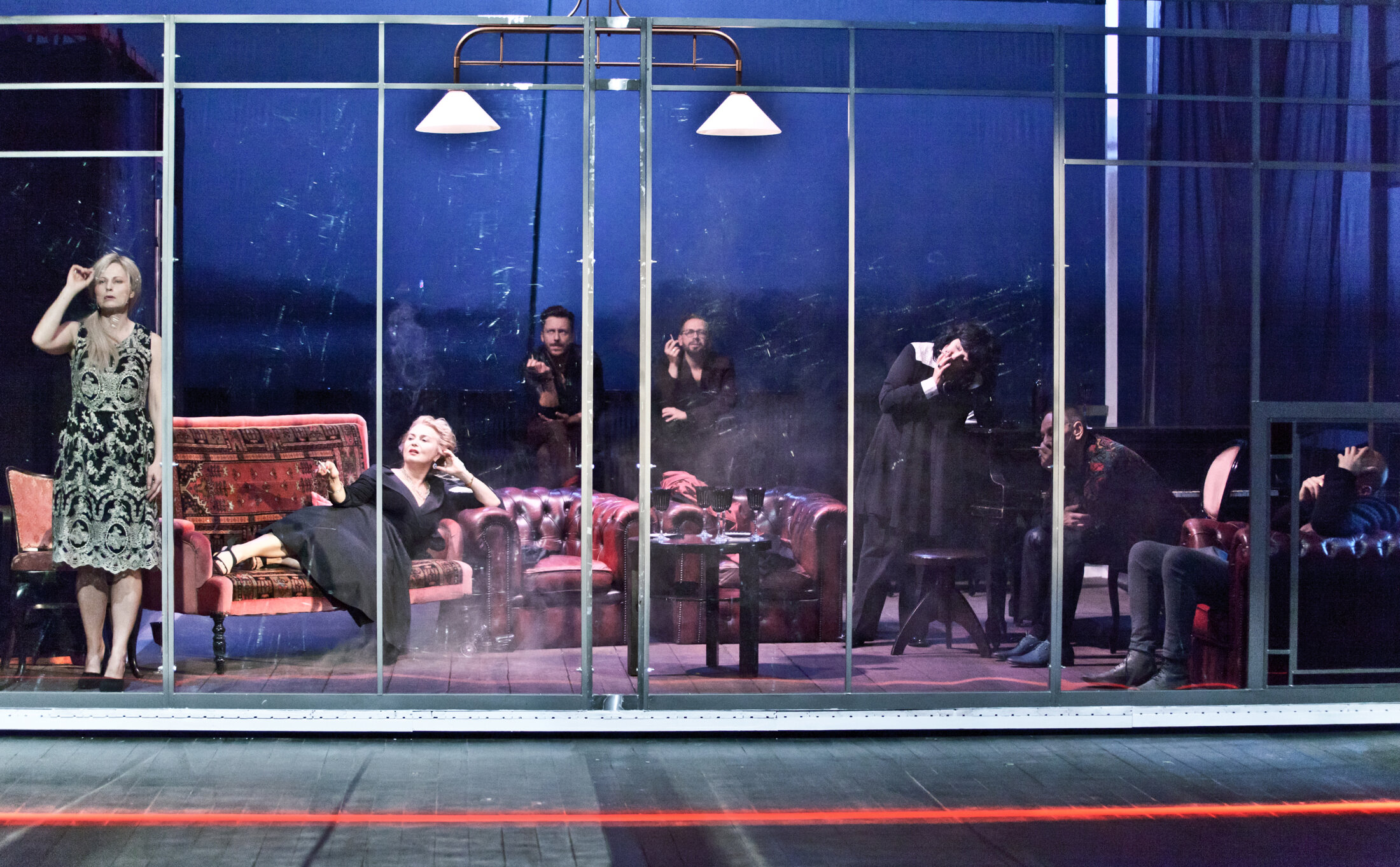 Lupa, et c’est heureux, s’approprie le texte de Bernhard. A sa manière et avec la complicité de ses acteurs. Par exemple, il gomme totalement l’histoire que partagèrent dans le passé le narrateur et Jeannie Billroth, la Virginia Woolf locale, ce qui donne à la solitude de cette dernière quelque chose de désespéré. En revanche il développe, extrapole, réinvente le personnage de Joanna (l’histoire d’une princesse nue, qui, me semble-t-il, ne figure pas dans le texte de Thomas Bernhard), la proximité passée entre elle et le narrateur tout en faisant de la somnambulique Joanna un fantôme qui s’invite dans le spectacle, et même avant que le spectacle ne commence (je ne vous en dis pas plus), traduction forte de la façon dont sa figure et son suicide hantent les conversations du salon.