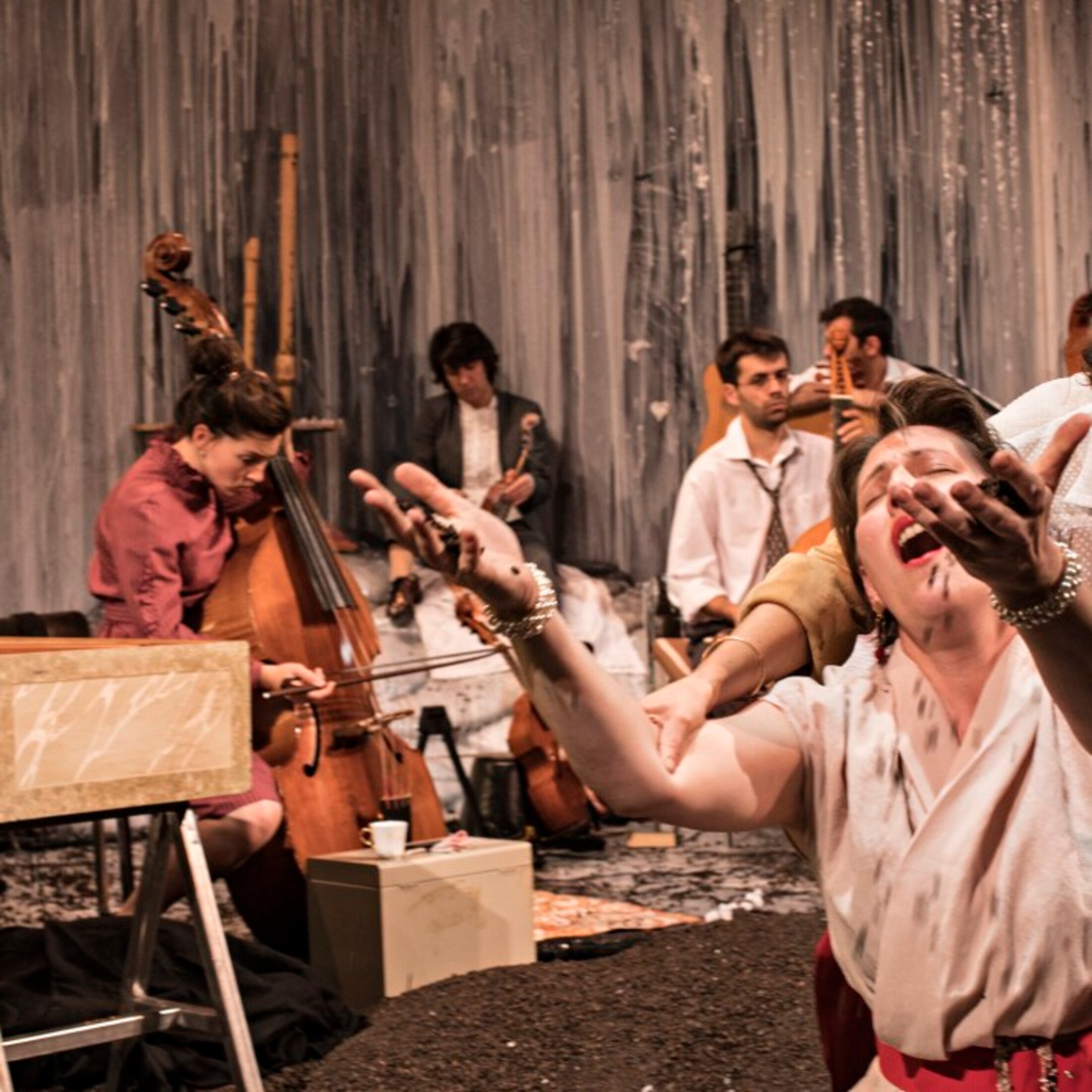Aux Bouffes du nord, c’est cette fois Samuel Achache qui est aux manettes de la mise en scène de Songs et Sébastien Daucé à la direction musicale (c'est lui qui est à l'origine du projet), lequel a fondé l’ensemble Correspondance en 2009 réunissant des chanteurs et instrumentistes amoureux du répertoire français sacré du Grand siècle et des instruments de l’époque, ensemble auquel la phénoménale soprano Lucile Richardot – pivot vocal de Songs – collabore régulièrement, comme c’est le cas ici sur des musiques et chansons anglaises du XVIIe siècle. Deux actrices sont sur le plateau, Margot Alexandre et Sarah Le Picard, cette dernière assurant également la dramaturgie tandis que Julien Villa (lui-même par ailleurs metteur en scène) a collaboré à l’écriture.