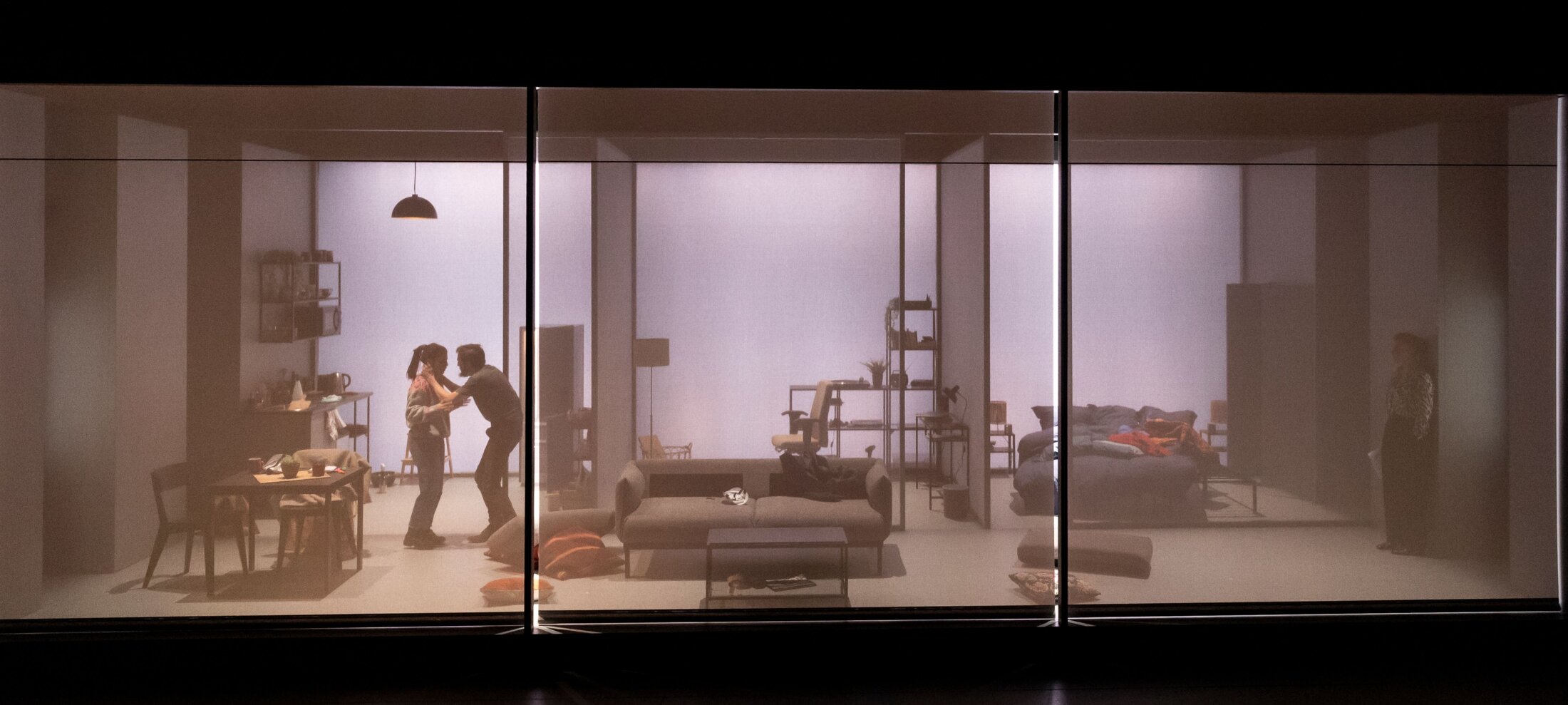 A un moment, les tourtereaux sont dans un restaurant, ils partent sans payer, mais le serveur slovaque, par « visio cryptée » affirmera à Lucy Kirkwood devenue personnage et avatar de sa pièce et de celle de Boisdamour, qu’ils ont bien payé et laissé un gros pourboire. Qui croire ? C’est bien la question sous-jacente à toute la pièce. « Je tiens à déclarer en toute transparente que certaines des premières scènes représentées ici sont en réalité des assemblages de différentes journées mais pas un mot des Quilter n’a été modifié » est-il écrit au cœur de la pièce, réplique attribuée par ses soins à Lucy Kirkwood elle-même ou à son avatar. Comme dira Céleste à Noah : « ce que je dis n’est pas réel mais c’est vrai » à quoi Noah répondra : « C’est pas parce que c’est dans ton imagination que ce n’est pas réel ». N’allez pas vous imaginez que cet article est une œuvre d’imagination, il rend bel et bien compte d’un spectacle réel et plein d’allant (quoique manquant un poil de peps sur la fin), mis en scène par Chloé Dabert à la Comédie de Reims, ville où le champagne aime se faire mousser en faisant des bulles.