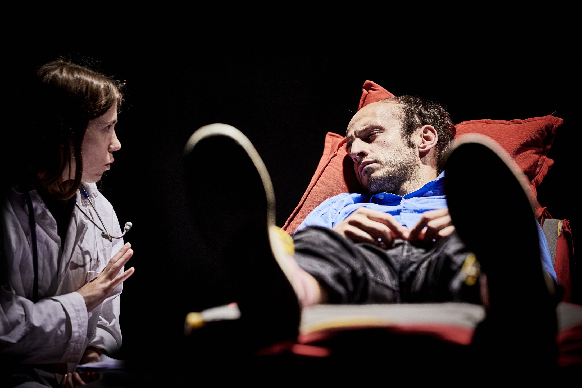 Voici qu’entrent alors en scène un médecin et une patiente, le premier annonce doucement à la seconde assise en face de lui qu’elle est atteinte d’un cancer ce qu’elle refuse de croire. Suivra un homme âgé qui souffre de problèmes respiratoires aigus auquel un médecin finira par dire : « la vérité c’est qu’on est arrivé au bout de ce qu’on peut faire pour vous ». Ou encore cette vieille femme de 96 ans qui en a assez de vivre : « je prends des médicaments matin, midi et soir, je mets des couches, je ne sors presque jamais. Je voudrais que ça s’arrête maintenant », ce que l’infirmière qui aime cette vieille personne refuse d’admettre. Cependant, nous restons au théâtre de bout en bout: les comédiens sont tour à tour malades et médecins, une blouse blanche sur les épaules, et hop.