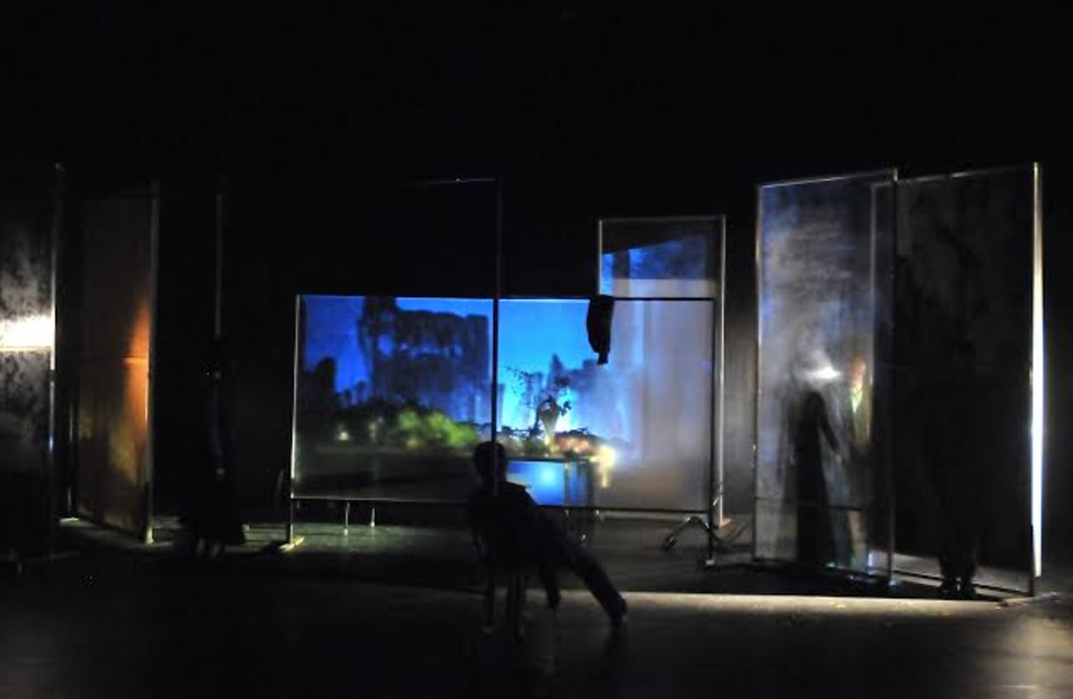 Il faut remercier la compagnie dramatique Atelier Hors champ d’avoir tenté de porter à la scène ce texte sans pareil. C’est la plus convaincante tentative d’adaptation de ce texte qu’il m’ait été donné de voir jusqu’à aujourd’hui. La conception et la réalisation de ce projet associent deux personnes aux compétences complémentaires, Pascale Nandillon et Frédéric Tétart, les deux capitaines de l’aventure. Elle signe la mise en scène, il la cosigne, et avec Soraya Sanhaji cosigne les lumières (Woolf ne se lasse pas de décrire la lumière) volontiers entre chien et loup, et tient la caméra vidéo dont le rôle est crucial.