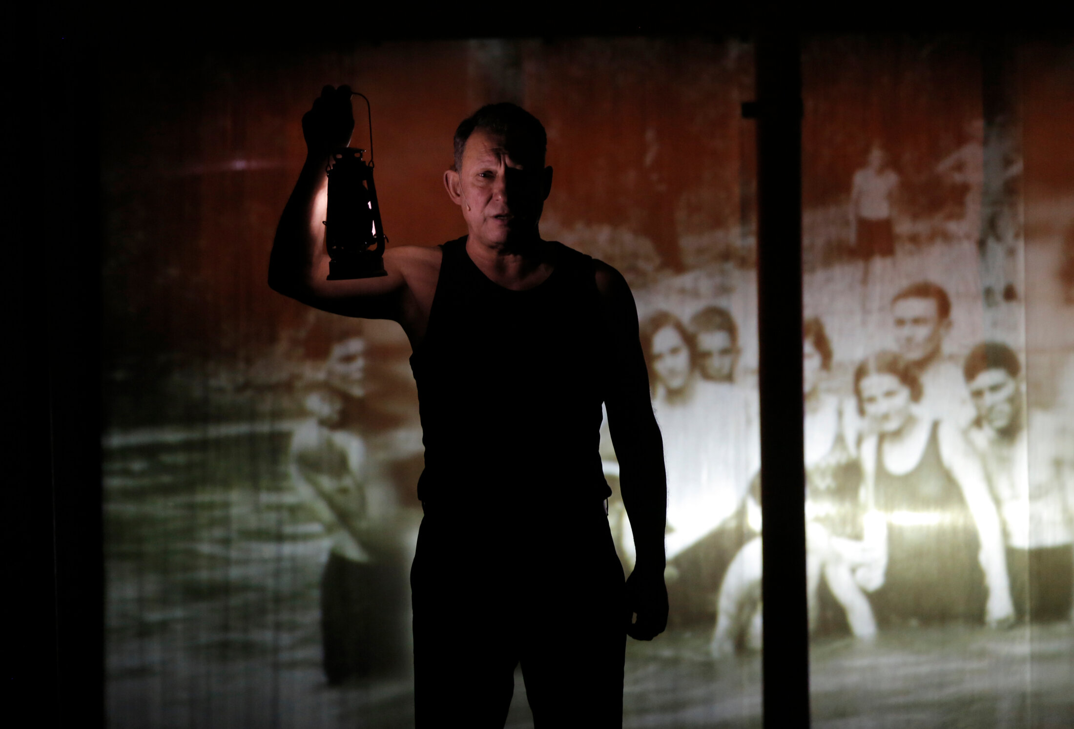 En maillot de corps, avec son physique de colosse, son léger accent, ses mains à la fois gigantesques et ourlées de légèreté, avec cette once de féminité qui sort toujours du corps des grands acteurs, Miglen Mirtchev est prodigieux de justesse, sobrement intense. Un Jean Valjean mâtiné d’un brin de Cosette. Sa présence massive nous entraîne dans les visions de son regard halluciné et le monde autour de lui nous arrive en un faisceau de voix off comme un pépiement d’oiseaux.