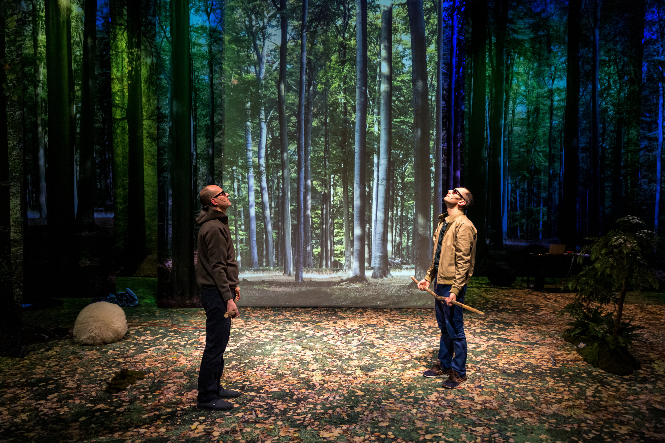 Disons que cela se passe en forêt comme un camp scout relooké CNRS avec partie de chasse au gros gibier en sus. A ceci près que l’on ne chasse pas le chevreuil du passé, mais le cerf beaucoup plus méfiant et imprévisible de l’avenir. Ce qui n’empêche pas Defoort et sa bande d’inventeurs scéniques de mettre en scène une nouvelle arme, le « mnémoprojecteur » qui, comme le nom l’indique, permet de projeter ses souvenirs devant soi, dans une sorte d’hologramme.