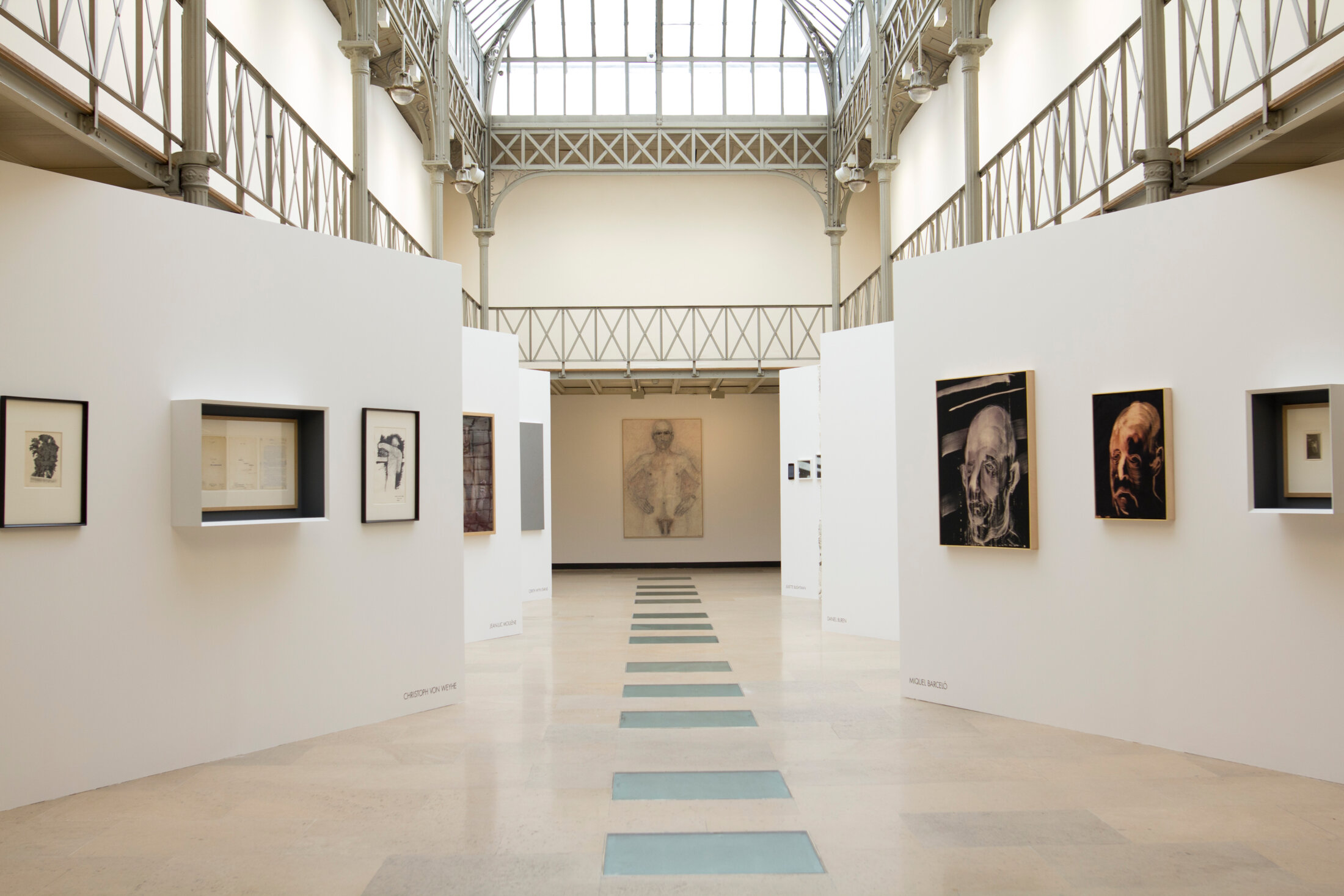 L’exposition provoque ainsi des rencontres entre un texte de Guyotat et une (ou plusieurs) œuvre(s) d’un artiste. Certaines conçues entièrement pour l’occasion. C’est le cas de Daniel Buren avec des pages de Samora Machel et, probablement, des deux portraits de Pierre Guyotat par Miquel Barcelò (réalisés en 2015) en regard d’un autoportrait photographique de Guyotat, un cliché noir et blanc de mars 1962 au moment (crucial pour son œuvre) de la guerre en Algérie. D’autres accords illustrent cet article.