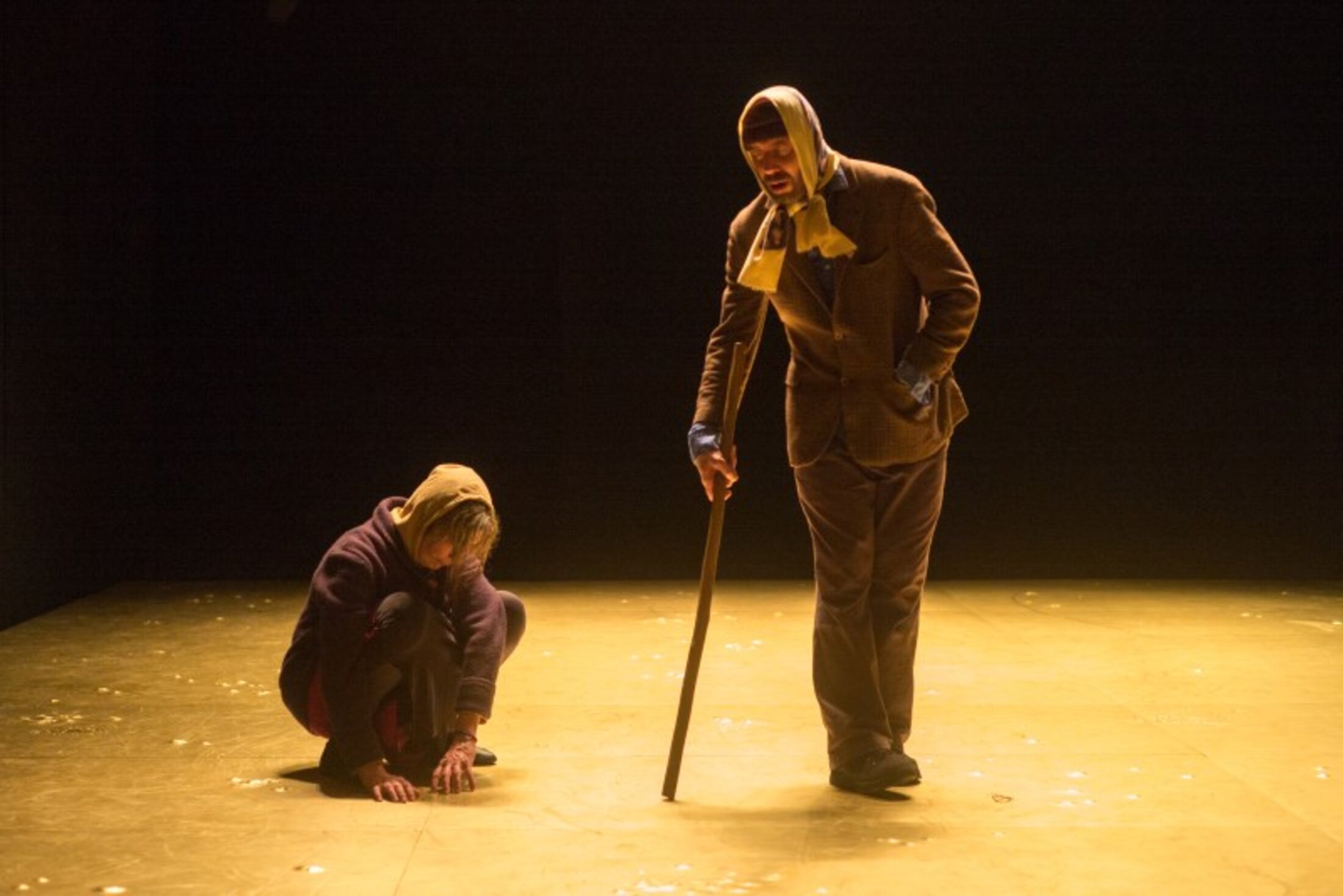 Belle parabole sur la cécité qui vaut aujourd’hui dans bien des pays où les plus voyants, les plus apparemment clairvoyants ne sont pas ceux qu’on croit, où l’obscurité des humbles, des proscrits, des rejetés est porteuse d’une lumière que beaucoup de voyants ne voient pas ne voulant pas la voir. La distribution est emmenée par deux acteurs méconnaissables, voix comme corps : Anne Alvaro (Mary) et Yann Boudaud (Martin). Ces voix de La Source des saints de Synge émettent des signes vers celle, un bon demi-siècle plus tard, d’un autre Irlandais, Samuel Beckett : « Maintenant tel quelqu’un dans un lieu inconnu à la recherche de la sortie. Dans les ténèbres. A l’aveuglette dans les ténèbres de jour ou de nuit d’un lieu inconnu à la recherche de la sortie. D’une sortie. Vers l’errance d’antan. Dans l’arrière-pays. » (Soubresauts).