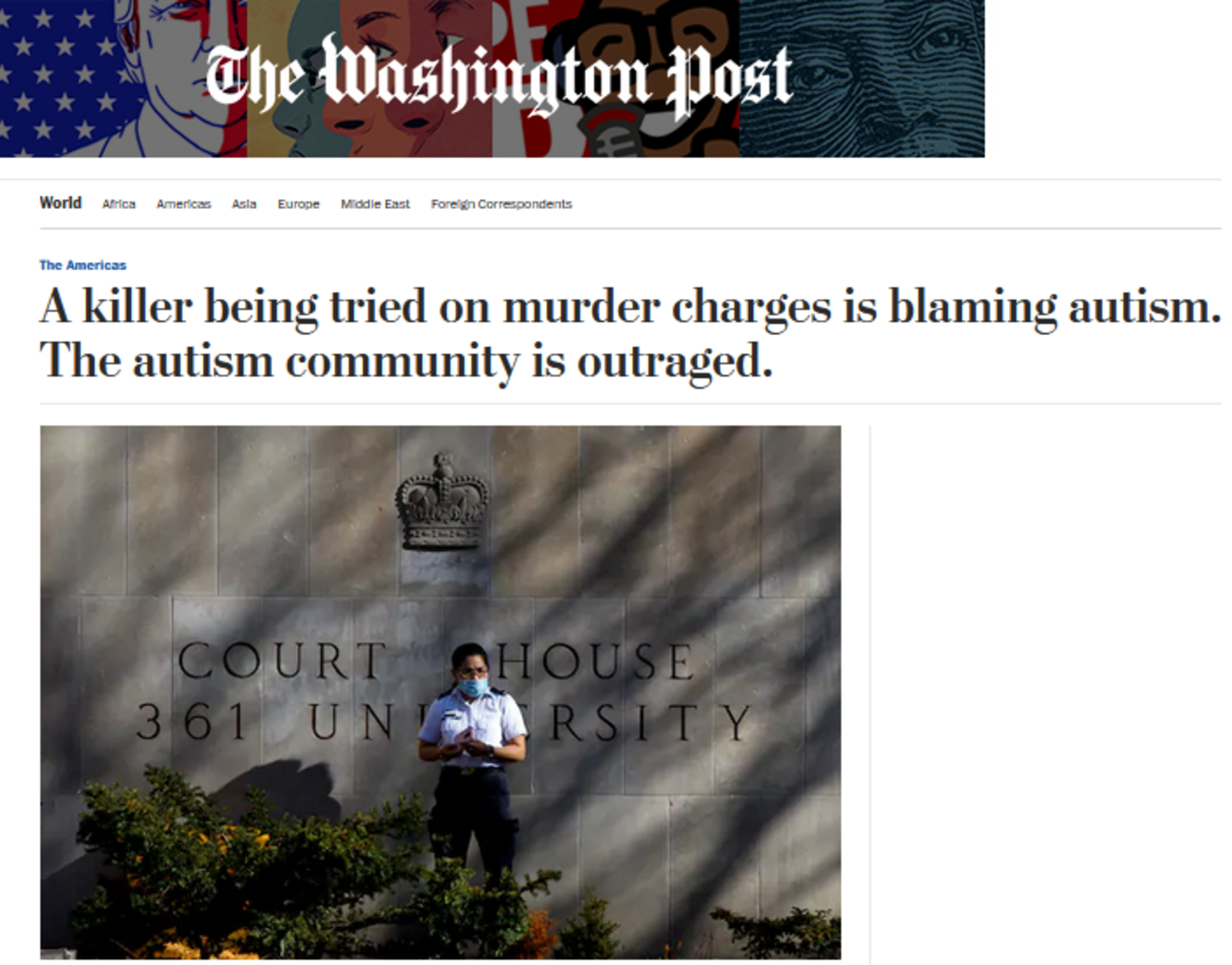 washingtonpost.com Traduction de "A killer being tried on murder charges is blaming autism. The autism community is outraged." - Amanda Coletta - 2 décembre 2020