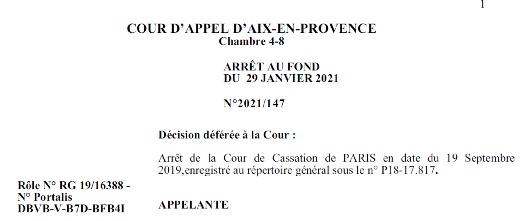 Arrêt de la Cour d'Appel d'Aix-en-Provence