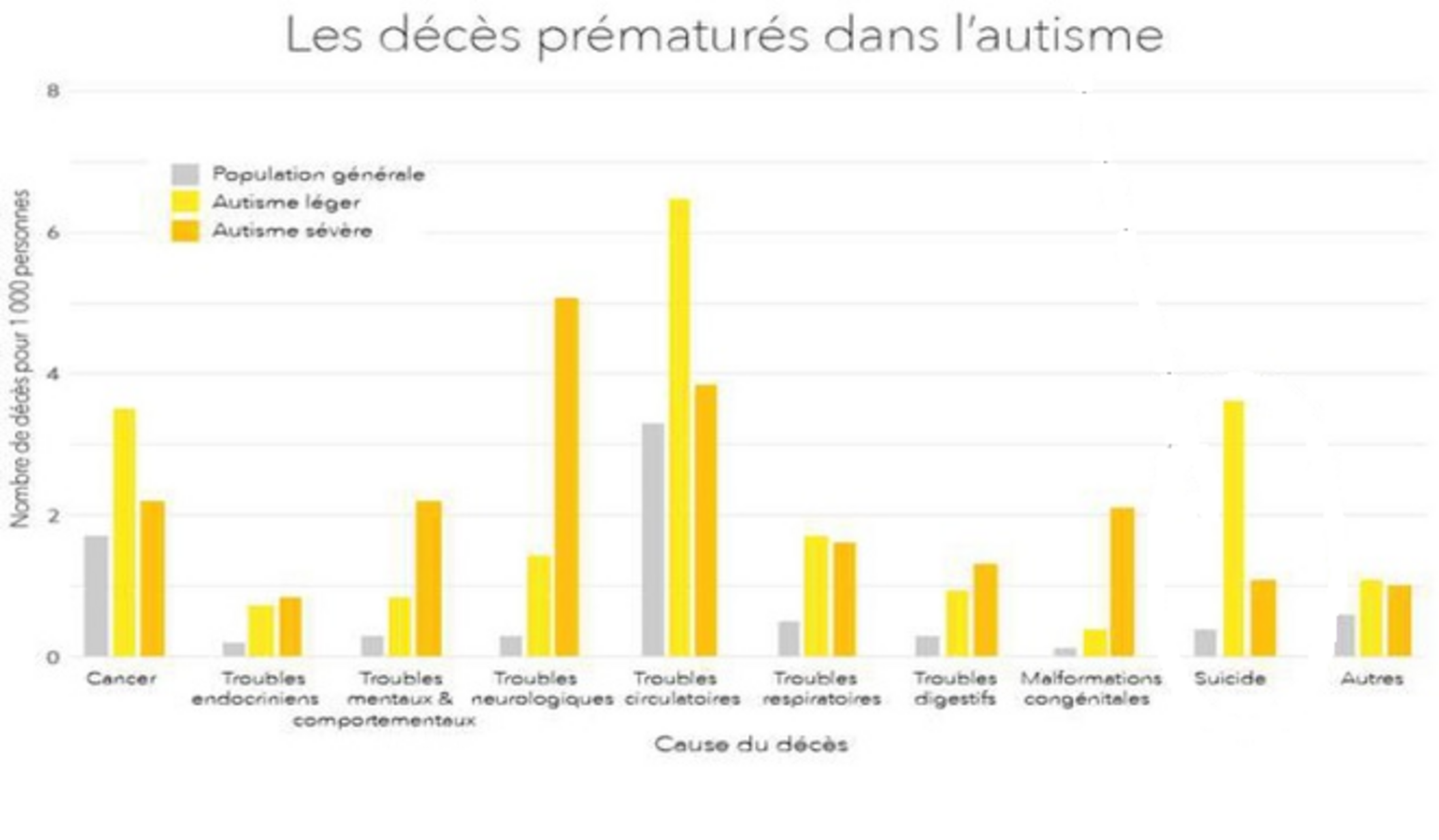 Les personnes autistes sont plus de deux fois plus susceptibles de mourir prématurément que la population générale. Ils sont également exposés à un risque accru de contracter diverses maladies, comme le diabète et le cancer, qui peuvent être mortelles.