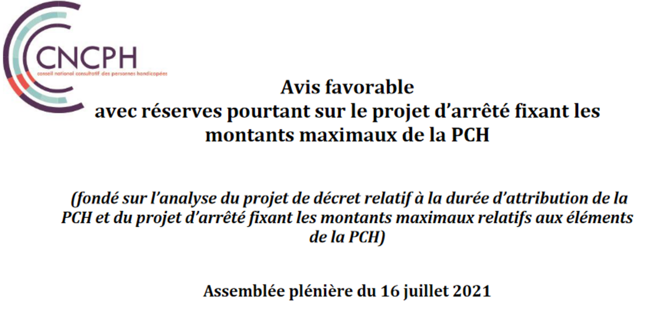 Le CNCPH a donné un avis favorable, car il faudra l'accord de la personne pour entamer la révision de la PCH.