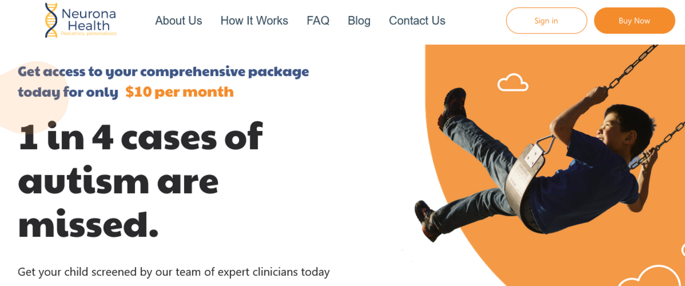 La semaine dernière, Neurona Health, une entreprise de San Francisco, en Californie, a commencé à commercialiser un service de dépistage de l'autisme sur Internet, censé aider les parents à déterminer les risques d'autisme de leur enfant. Le service - qui coûte 299 dollars par an et n'est pas couvert par l'assurance maladie - comprend un test génétique, un questionnaire de dépistage de l'autisme et des visites de télésanté (la société propose actuellement un prix inférieur pour les premiers clients).
