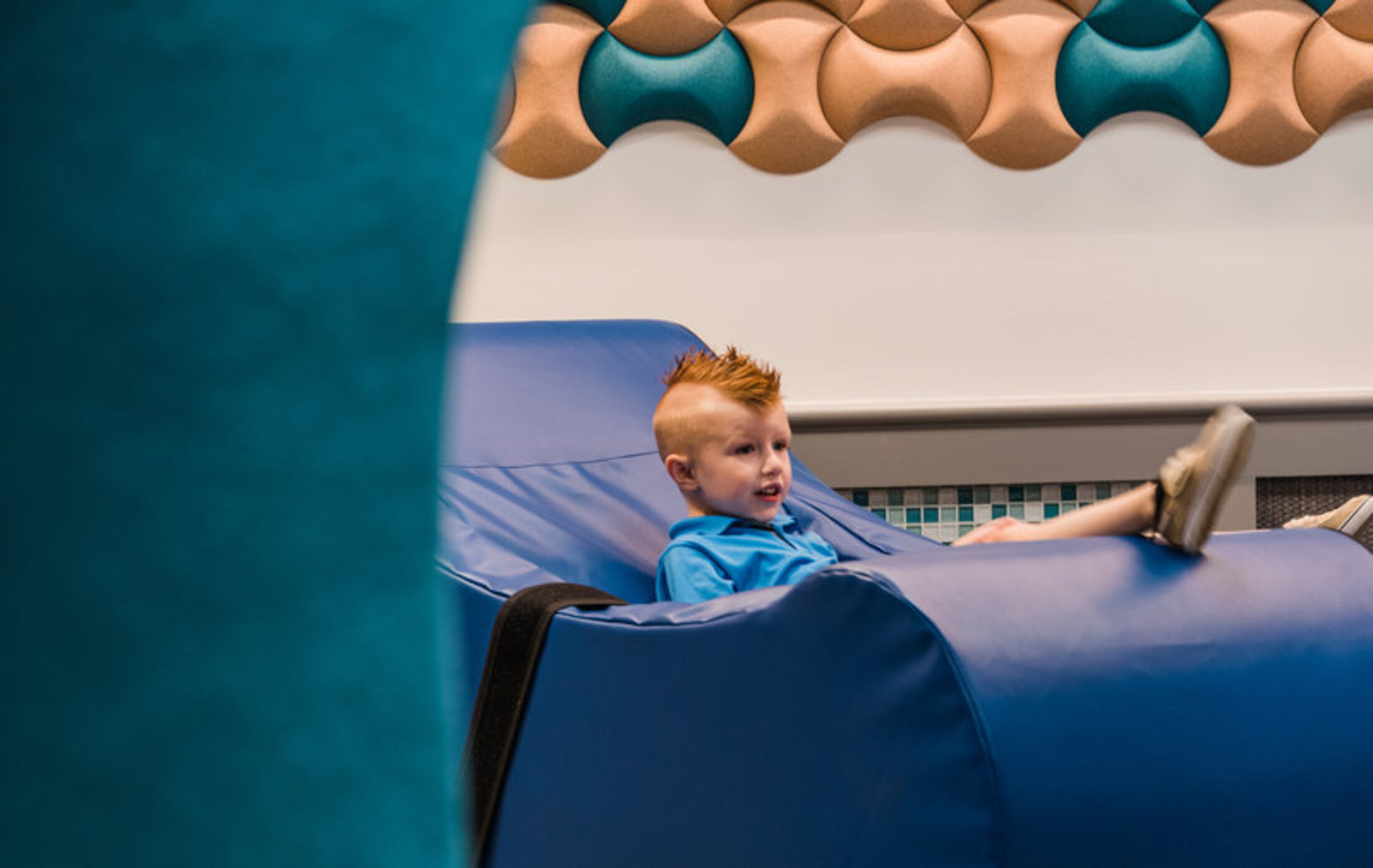 "Je m'attendais à une petite pièce avec peut-être des sacs de haricots et des lumières tamisables, dit Benham, parce qu'on m'a appris à avoir des attentes faibles. Et entrer dans cet espace qui est énorme et qui répond à une variété de besoins - je n'ai même pas les mots pour dire ce que ça veut dire." L'espace comprend également une pièce avec une plus grande table à langer, pour les adultes ayant des besoins spéciaux, par exemple - un besoin que les familles disent souvent négligé.