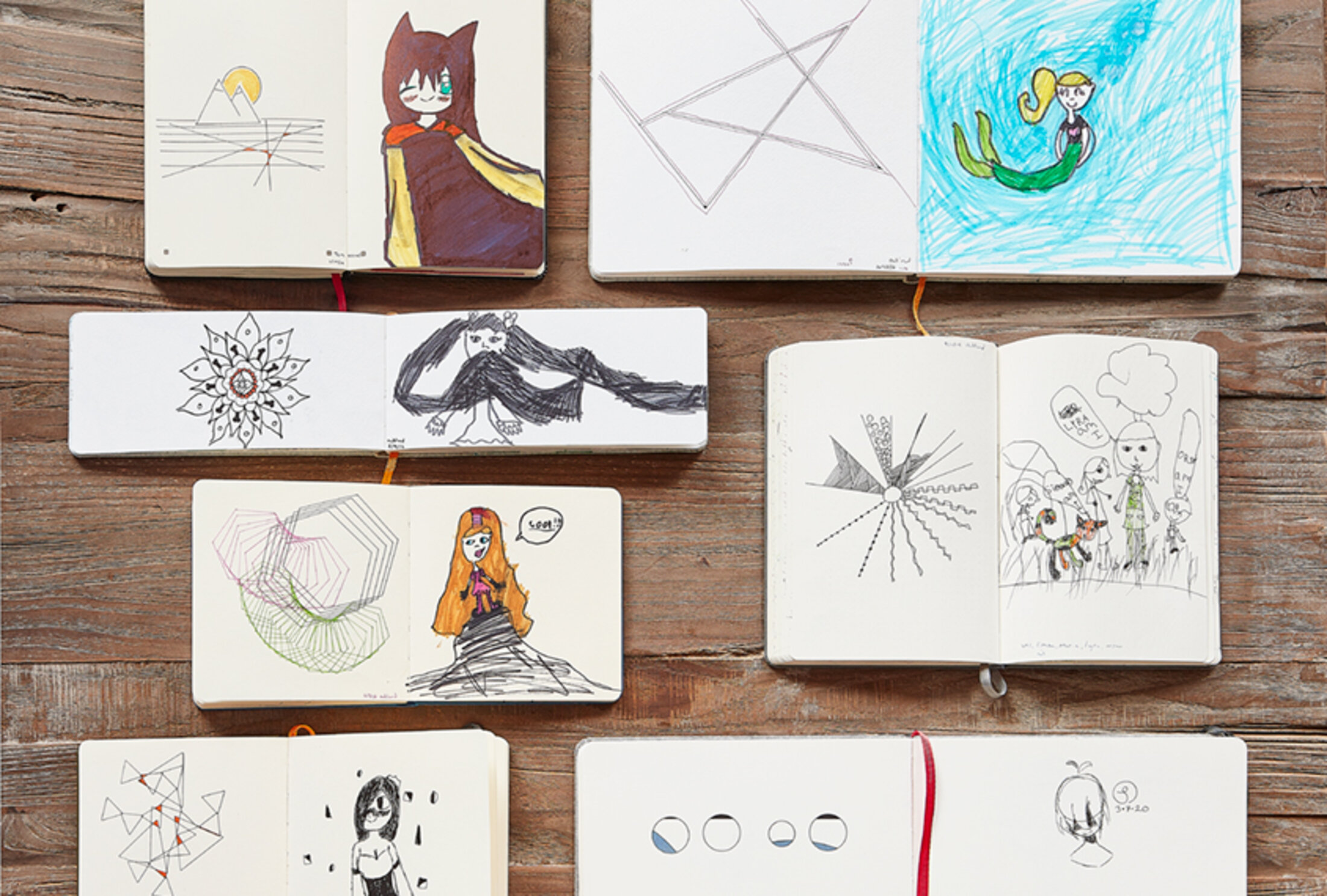 WG : Je pense que cela montre vraiment nos différents styles et esthétiques. Il y a aussi un aspect d'âge que vous voyez, surtout dans les dessins de Lyra, parce que parfois ils reflètent une bande dessinée ou un personnage qui l'intéresse. Elle dessine aussi des personnages féminins presque exclusivement. Je n'ai jamais eu de réponse claire, sauf une fois où elle a dit : "Parce que les garçons sont nuls". Donc il y a ça.