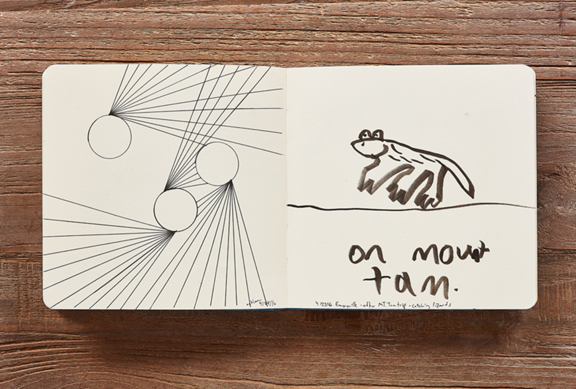 WG : C'est un repère. Nous documentons toujours la date et l'endroit où nous l'avons dessiné. Ainsi, si j'étais sur un vol, à Hong Kong ou à la maison, nous avons ce repère pour nous rappeler l'heure à laquelle nous l'avons dessiné. De plus, nous savons quel âge nous avions et cela nous aide à mettre les choses en contexte.
