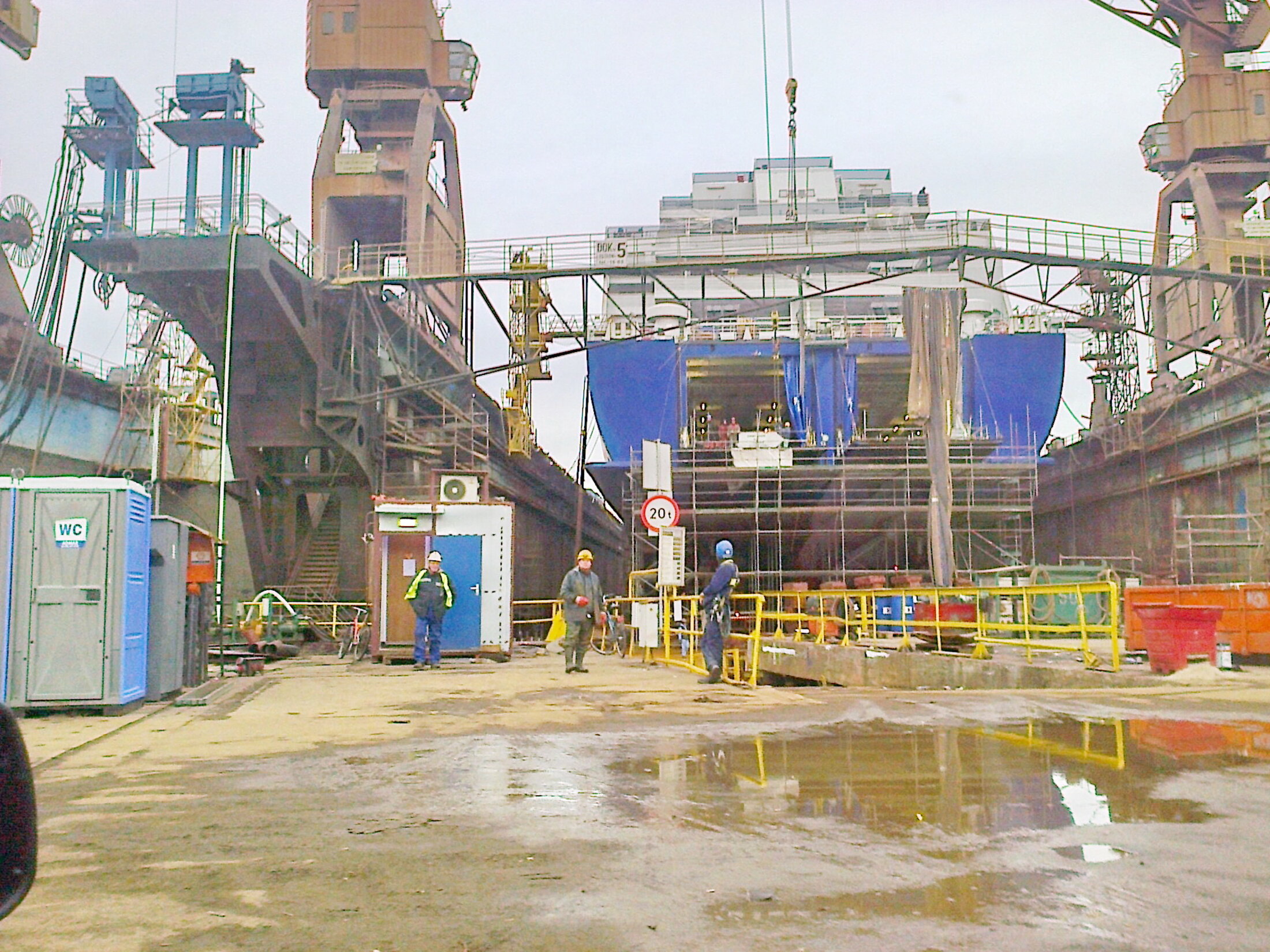 Teresa m’emmène tout de suite au chantier naval « Remontowa » (de réparation) qui porte aussi le nom de Jozef Pilsudski. C’est à deux pas de la gare. Miroslaw Piorek, le responsable de Solidarność nous y attend. Il y avait jadis trois chantiers navals : le chantier « Lénine » a fermé, le chantier « Nord » a été restructuré et certains ateliers rattachés au chantier « Remontowa » privatisé en 2001. Ce dernier n’emploie plus que 1800 salariés (ils étaient 6400 en 1988 et 2200 à la privatisation). Il faut y ajouter un peu plus de 2000 salariés, des « Kooperanci », qui travaillent en interim ou pour des petites entreprises sous-traitantes, généralement sous des contrats individuels courts. Piorek est un homme souriant, doté d’un charisme évident. Il emporte immédiatement la sympathie. Il nous prend dans sa voiture et nous partons visiter le chantier. Vaste étendue. De vieux halls aux portes neuves. D’immenses coques colorées en vert, en rouge, des grues jaunes, des ponts roulants sous un ciel bas. Tout me renvoie à 1980. C’est toujours aussi impressionnant. Des bâtiments rutilants, mais cette fois peu de travailleurs apparents. Une coque avec un nom norvégien. Le chantier travaille à l’exportation. « Ici, insiste Piorek, tout est polonais, les capitaux, les ouvriers, la technologie. Notre savoir-faire est reconnu dans le monde entier. » Il est visiblement fier de ce lieu. C’est son domaine. Employé du syndicat depuis une vingtaine d’années, il est entré au chantier dans le milieu des années 1980. Il fut un des jeunes dirigeants de la fameuse grève de 1988. Celle qui déboucha en 1989, sur la Table ronde entre Solidarność et les communistes. Il avait 28 ans (il est né le 11 novembre, jour de l’indépendance proclamé par Pilsudski en 1918, insiste-t-il. Et en plus nous avons baptisé notre chantier « Pilsudski ». Visiblement, il adore le Maréchal !)