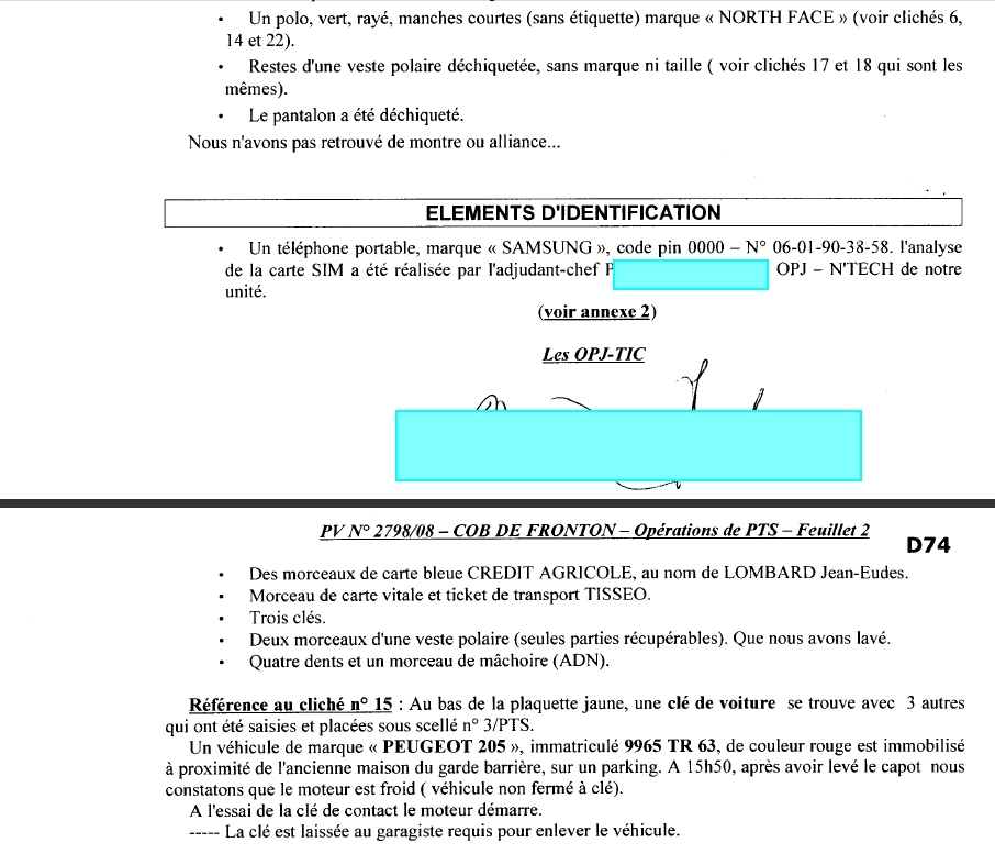 Le rapport de criminalistique D73 - D74 des TIC( quel beau nom mais truffé de mensonges !!! ) le voilà dans D74 ( ligne 4 ) avec son "polaire que nous avons lavé " entr'autres => commenté prochainement.