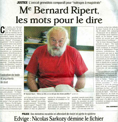 Le valeureux Me Bernard Ripert fait par ailleurs l’objet d'une procédure disciplinaire abusive.