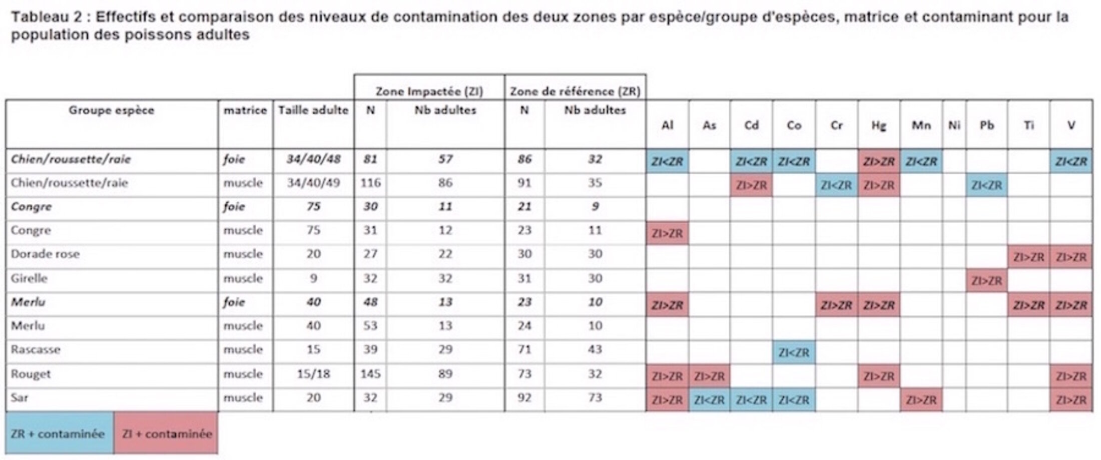 « Pour les principaux éléments traceurs des rejets en lien avec les activités de transformation de minerai de bauxite de l'usine d'Alteo, à savoir l’aluminium, le vanadium et le titane, les tests significatifs concernant le muscle vont toujours dans le sens d’une plus grande contamination dans la zone impactée par le rejet.»