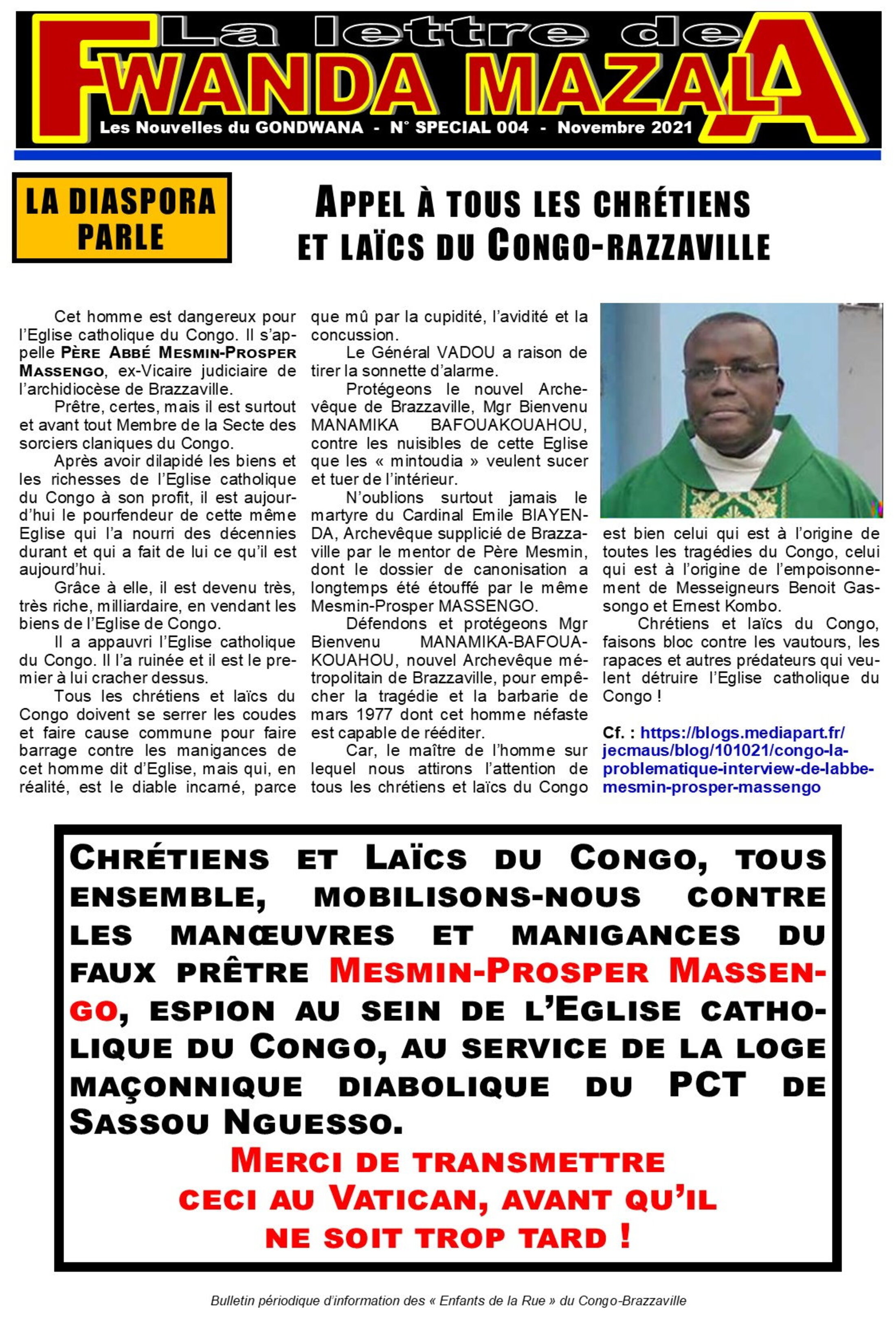 Pour protéger l'Eglise catholique du Congo de toutes dérives internes et externes