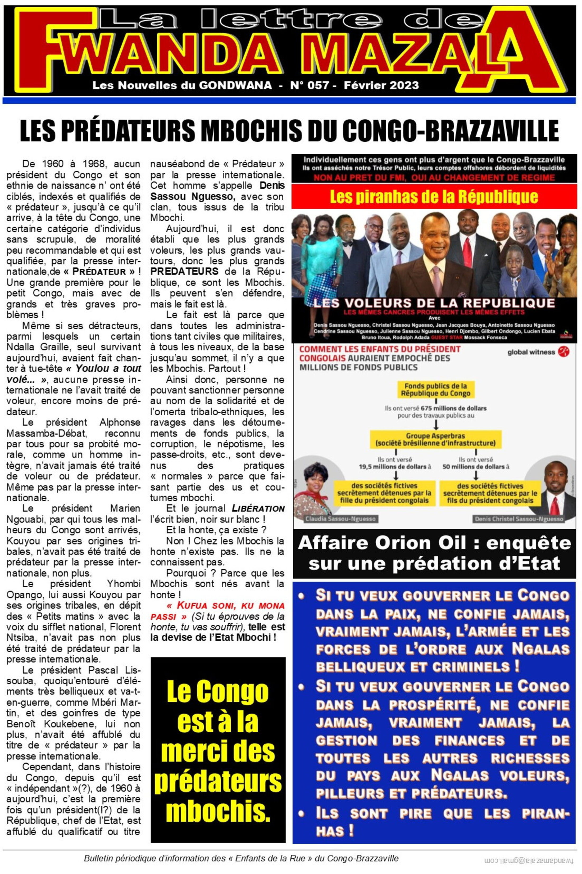 De 1960 à 1968, aucun président du Congo et son ethnie de naissance n’ ont été ciblés, indexés et qualifiés de « prédateur », jusqu’à ce qu’il arrive, à la tête du Congo, une certaine catégorie d’individus sans scrupule, de moralité peu recommandable et qui est qualifiée, par la presse internationale,de « Prédateur » !