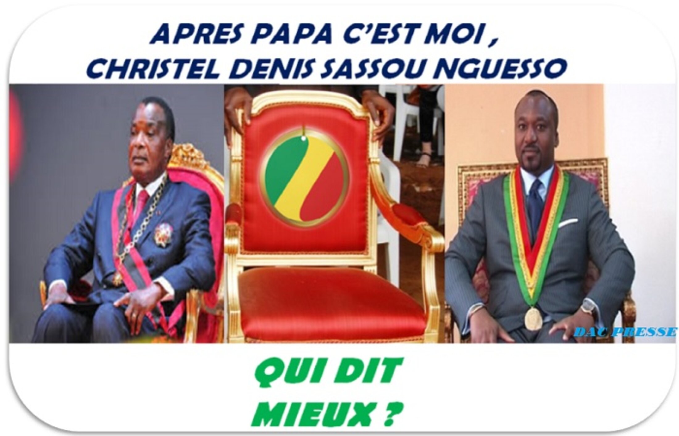 Cette nouvelle nomenklatura congolaise rompue à l’économie du marché, prospère aussi bien dans les sociétés d’État que dans le secteur privé. Elles s'accaparent des pans entiers de l’économie congolaise pour blanchir l’argent détourné par leurs parents et mettre à profit ce pactole pour corrompre les élites et une frange de la population acquises à leur cause. Avec en prime, la peur des soudards de l’armée congolaise à la botte de monsieur Sassou Nguessso qui terrorise les paisibles populations congolaises. Voilà comment perdure au milieu de la forêt tropicale, équatoriale, l’une des dictatures les plus cruelles et inhumaines que l’humanité n’ait connu. Et comme dans tous ces régimes maudits, la succession se prépare.