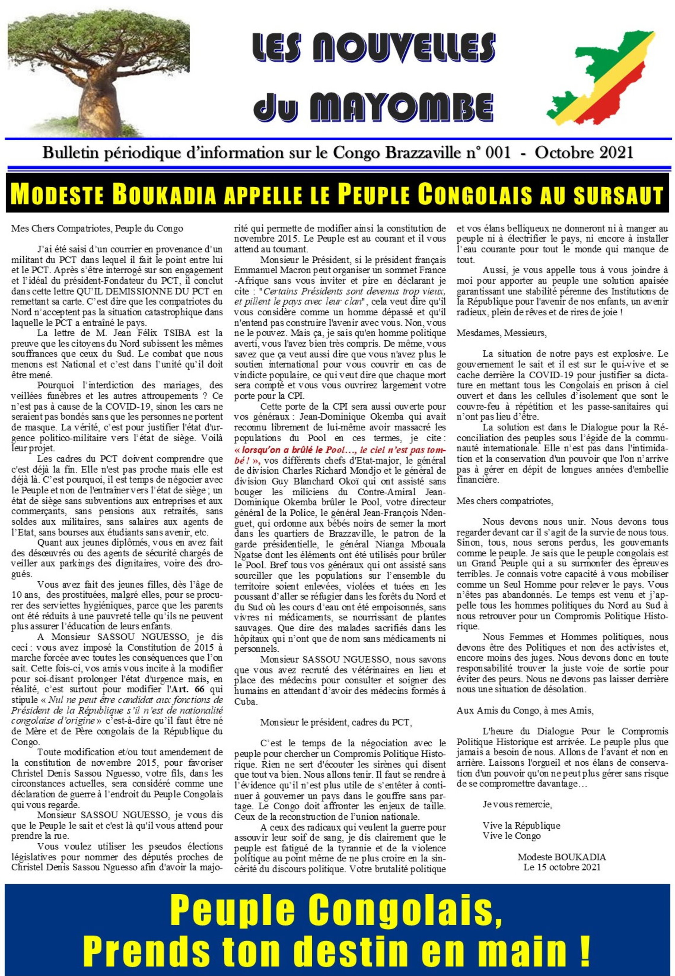 Modeste Boukadia appelle le Peuple Congolais au sursaut
