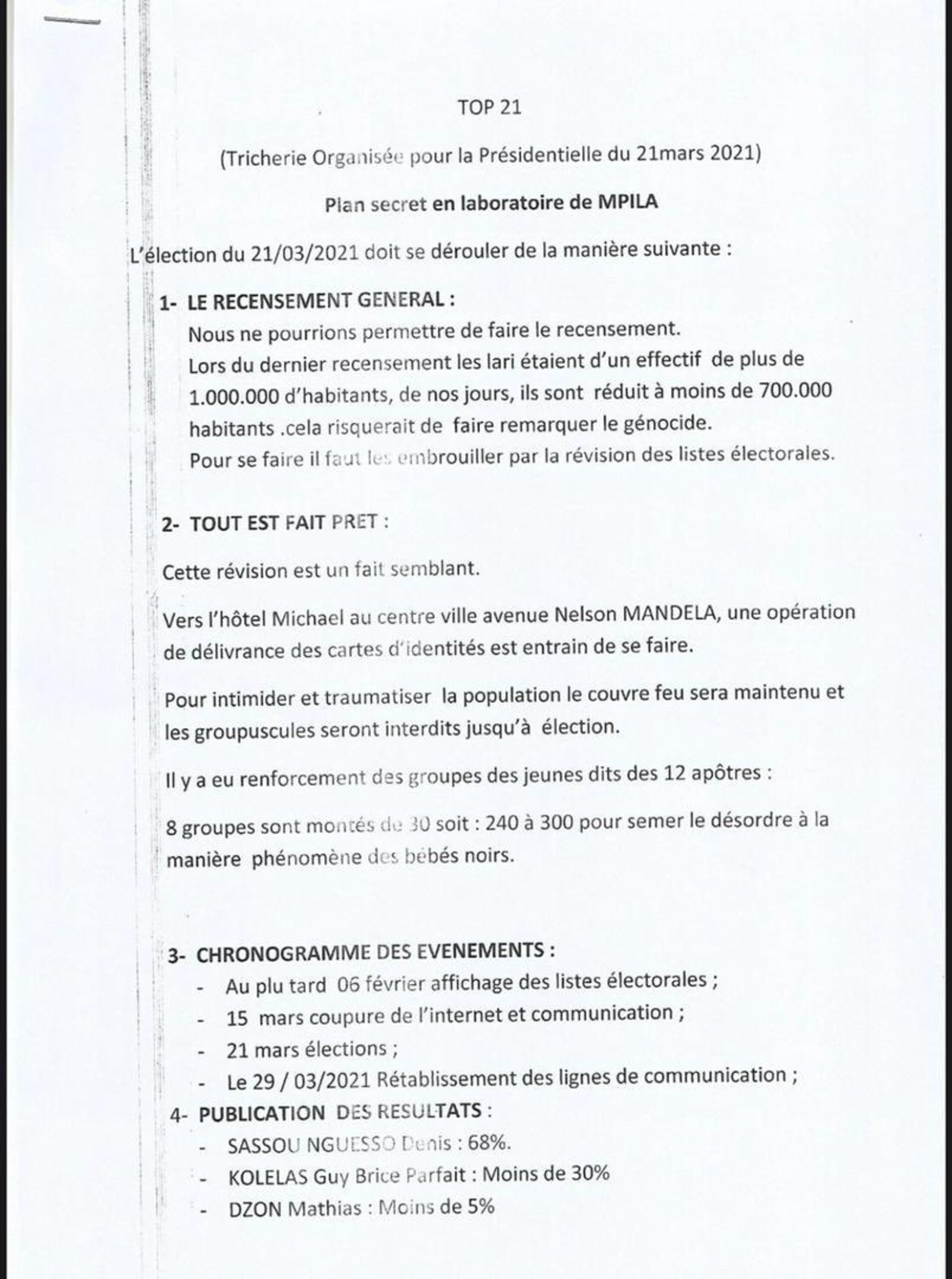 Enfin, lisez le document ci-après pour bien comprendre le scénario mis en place par les fossoyeurs de la République, depuis Oyo et Mpila.