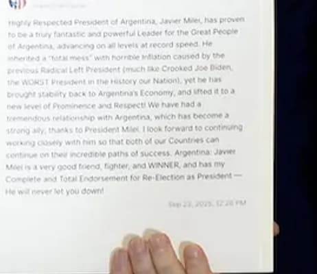 En marque allégeance et de soumission, Javier Milei brandit un tweet (imprimé! ) de Donald Trump