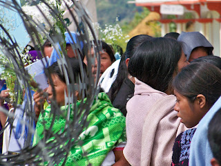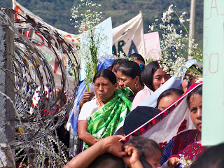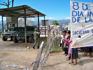 Les femmes Abejas du Chiapas, après une manifestation, occupent le camp militaire de Majomut, pour la journée internationale de la Femme, le 8 mars