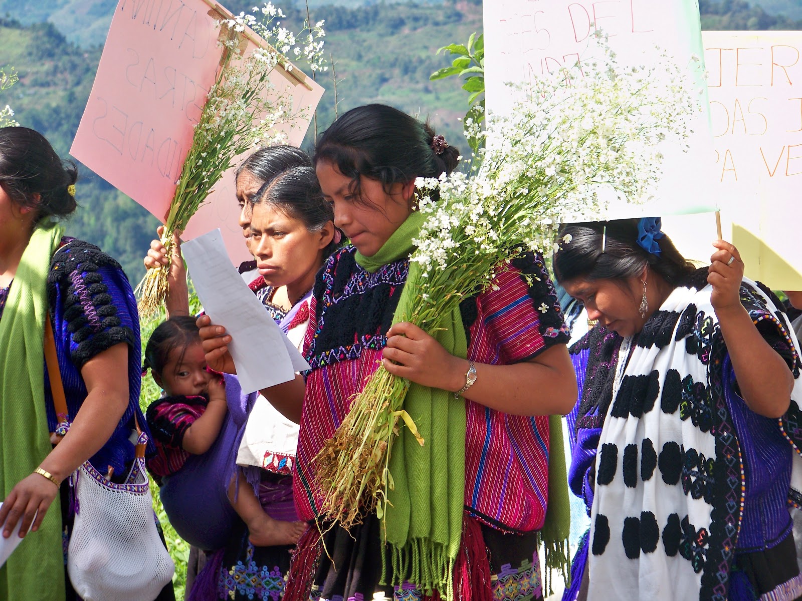 Comme ces femmes assassinées pour lutter, comme femmes de la Société Civiles Las Abejas nous nous rappelons de nos martyres, femmes enceintes, jeunes et filles qui, au troisième jour de leur jeune et prière, ont été massacrées. Nous ne nous fatiguons pas d'exiger la justice, car le gouvernement ne nous écoute pas et ne tient pas sa parole, il libère les paramilitaires qui ont assassiné nos sœurs, nous continuons à exiger la justice.