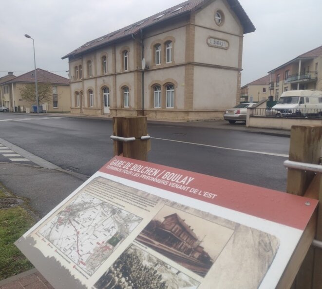 La gare de Boulay-Moselle, à 30 km de Metz, a connu un important trafic ferroviaire de 1873 à 1986. 320 000 prisonniers soviétiques y ont transité entre 1941 et 1944. Et pour ne pas oublier la tragédie du Ban Saint Jean, l'AFU vient d'y installer un panneau souvenir. -