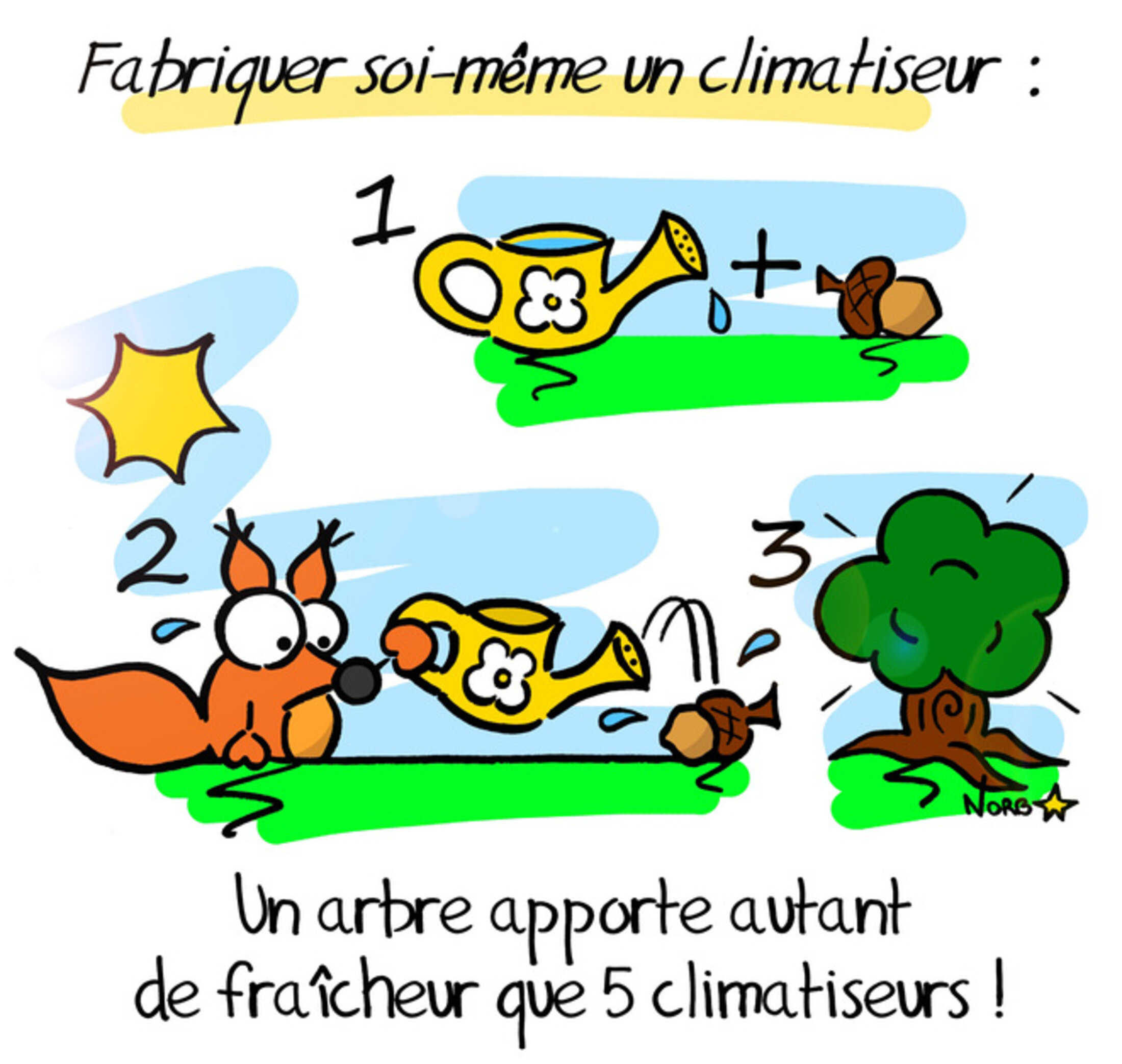 A dessein vous trouverez ci-après un dessin approprié vous expliquant comment fabriquer un climatiseur, non polluant et végétal, dont la morale est pleine de bon sens. (trouver d'ailleurs dans les colonnes de Médiapart et fort à propos)