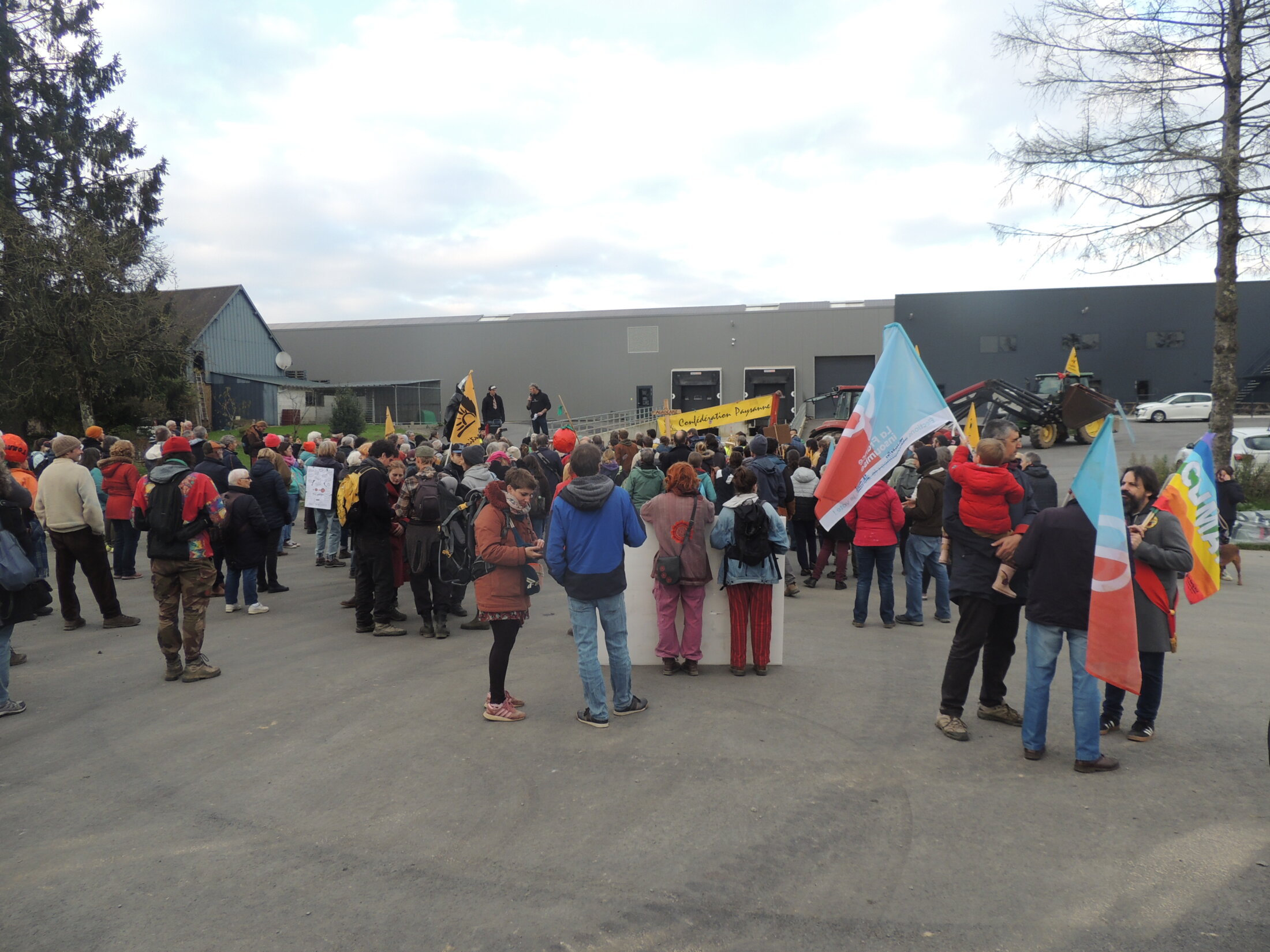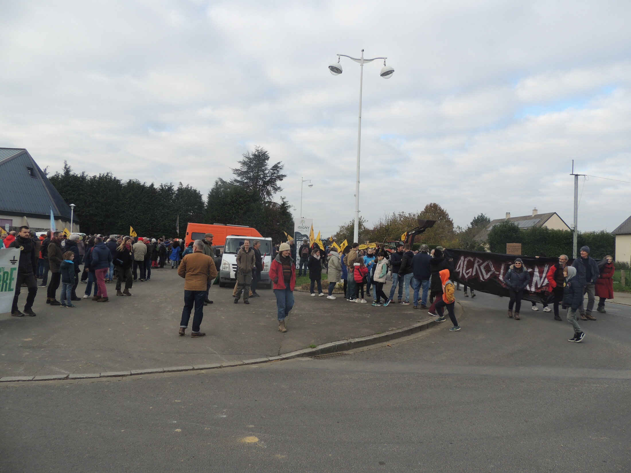A l’appel de la Confédération paysanne de la Manche soutenant le collectif STOP TOMATES local et également avec le soutien de structures, syndicats, partis politiques, des élus municipaux engagés et une foultitude de citoyens très engagés ont marché depuis le bourg d’Isigny le Buat, vers le lieu de l’extension envisagée au lieudit « Le bois Aubé ».