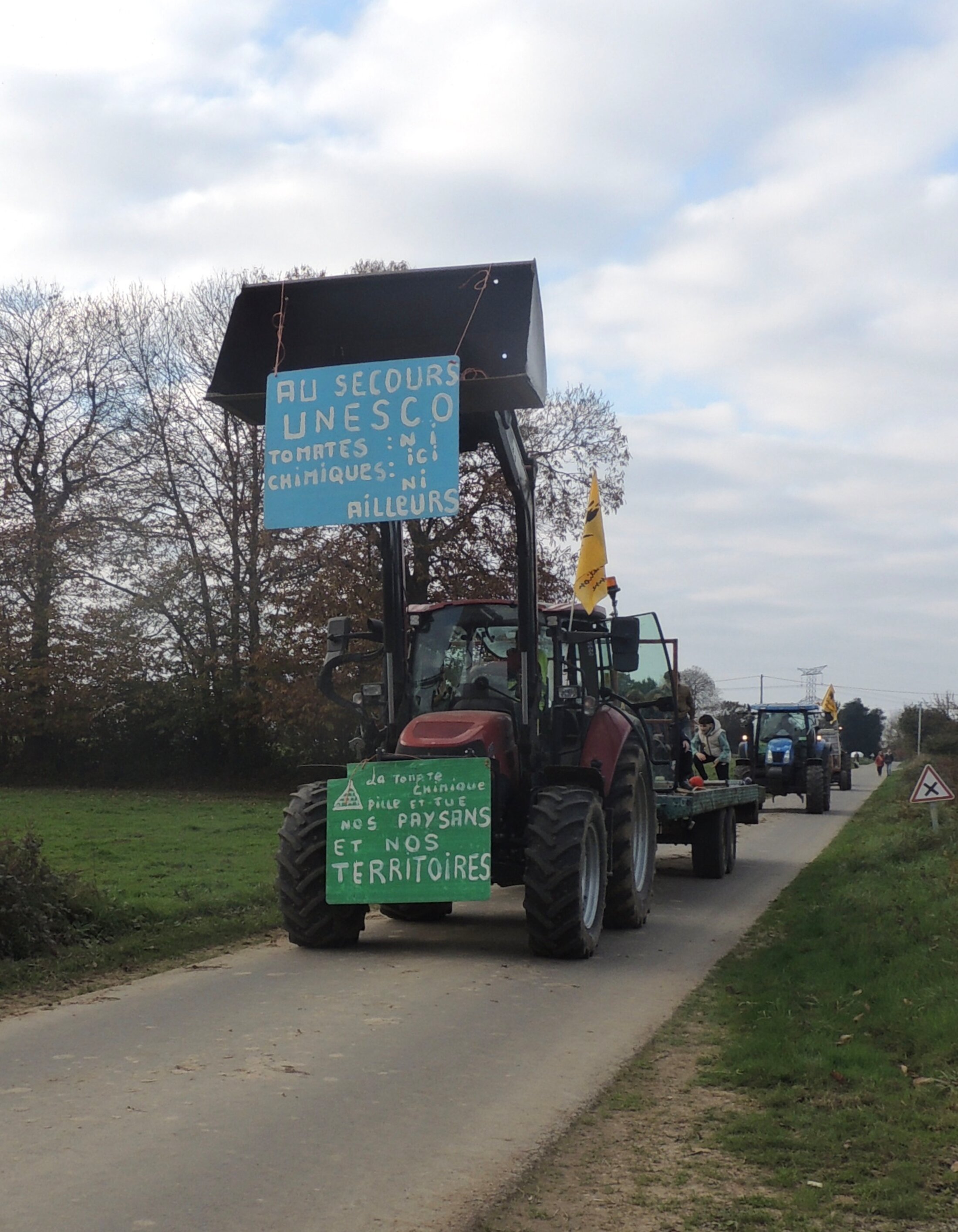 La Confédération paysanne a souligné que la commune se trouve dans le secteur inter départemental de protection de la zone UNESCO de la baie du Mont St Michel comme patrimoine de l’humanité, dont la société se sert indirectement en vendant des « tomates du Mont St Michel » sauf que c’est hors sol dons sans lien aucun à la terre normande.