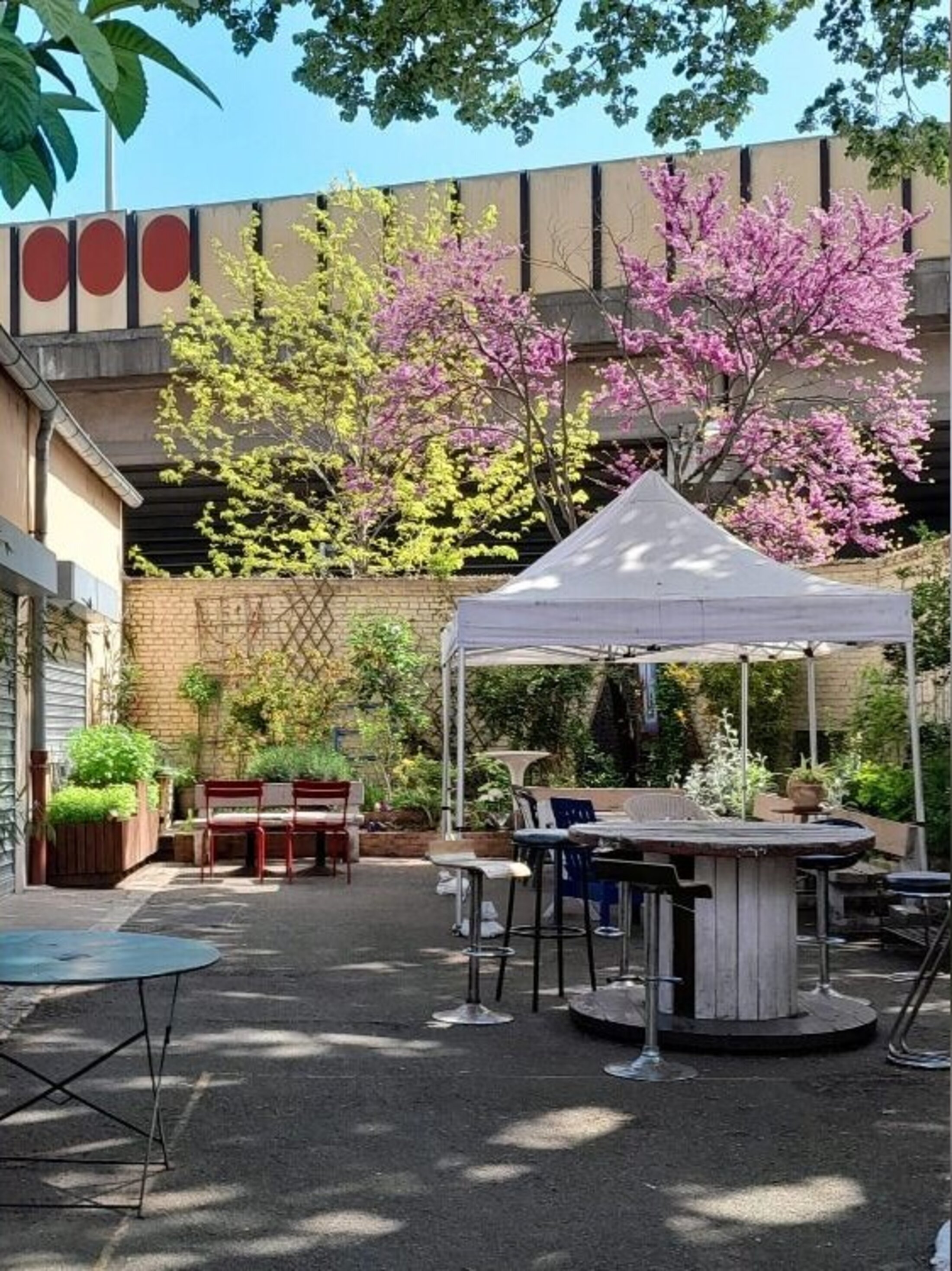 En 2021 le KAMU emménage alors au 8 rue Fanny, dans un lieu bien mieux adapté à ses activités. Il est doté d’une petite cours arborée où du mobilier de jardin est installé, où les distributions de l’AMAP de la Garenne se poursuivent, où les ateliers de jardinage reprennent, où d’autres ateliers peuvent alors être menés à ciel ouvert, dont l’atelier mosaïque permettant d’habiller les murs de cette cours.