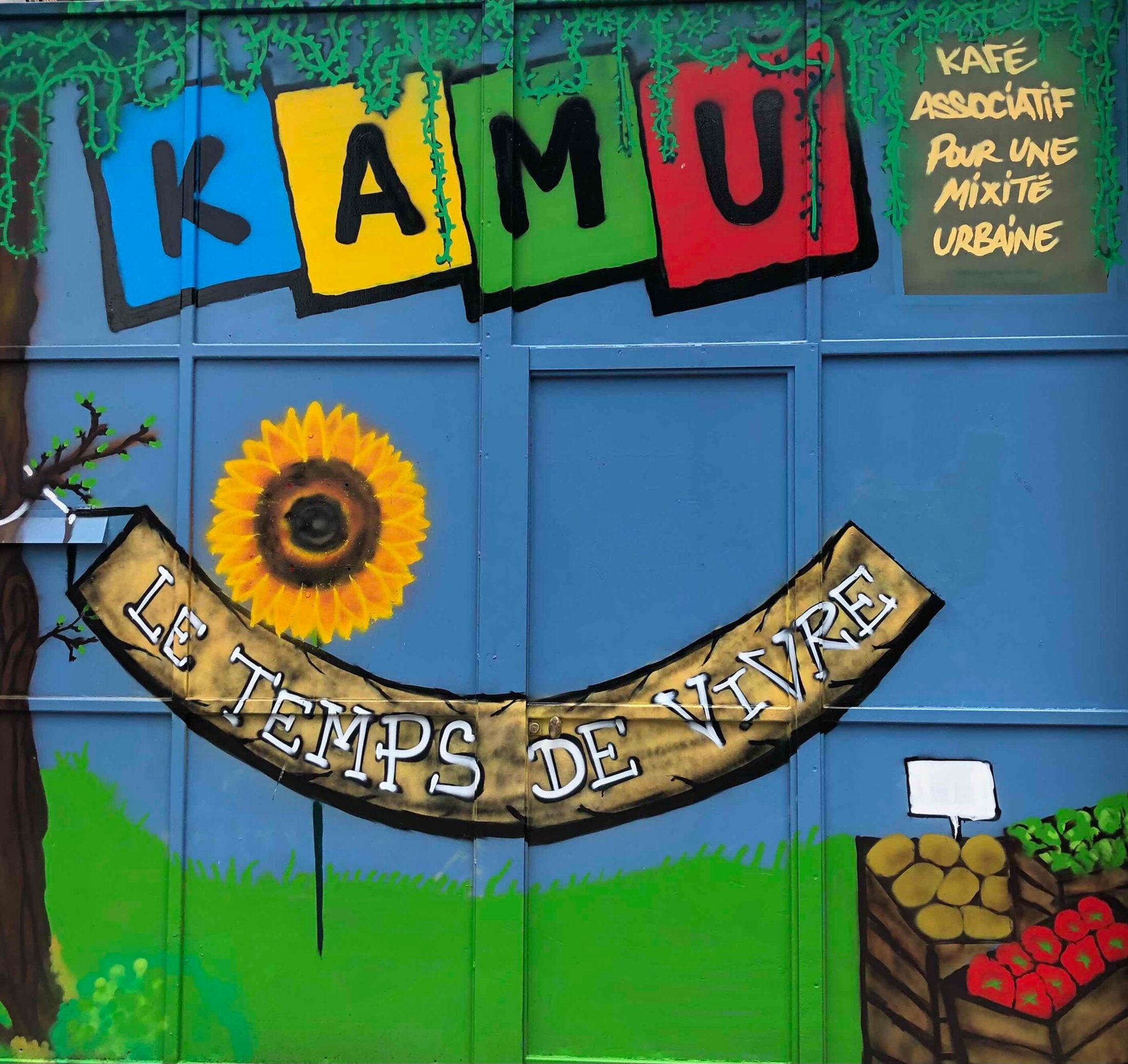 C’est dans le contexte de cette alternance politique locale qu’une association fait alors ses premiers pas, le KAMU, qui ouvre ses portes en 2014 et dont le nom complet est : Kafé Associatif pour une Mixité Urbaine – Le Temps de Vivre. Il prend forme dans le nord de Clichy-la-Garenne, dans les murs d’une ancienne brasserie, attenante à une galerie commerciale désaffectée.