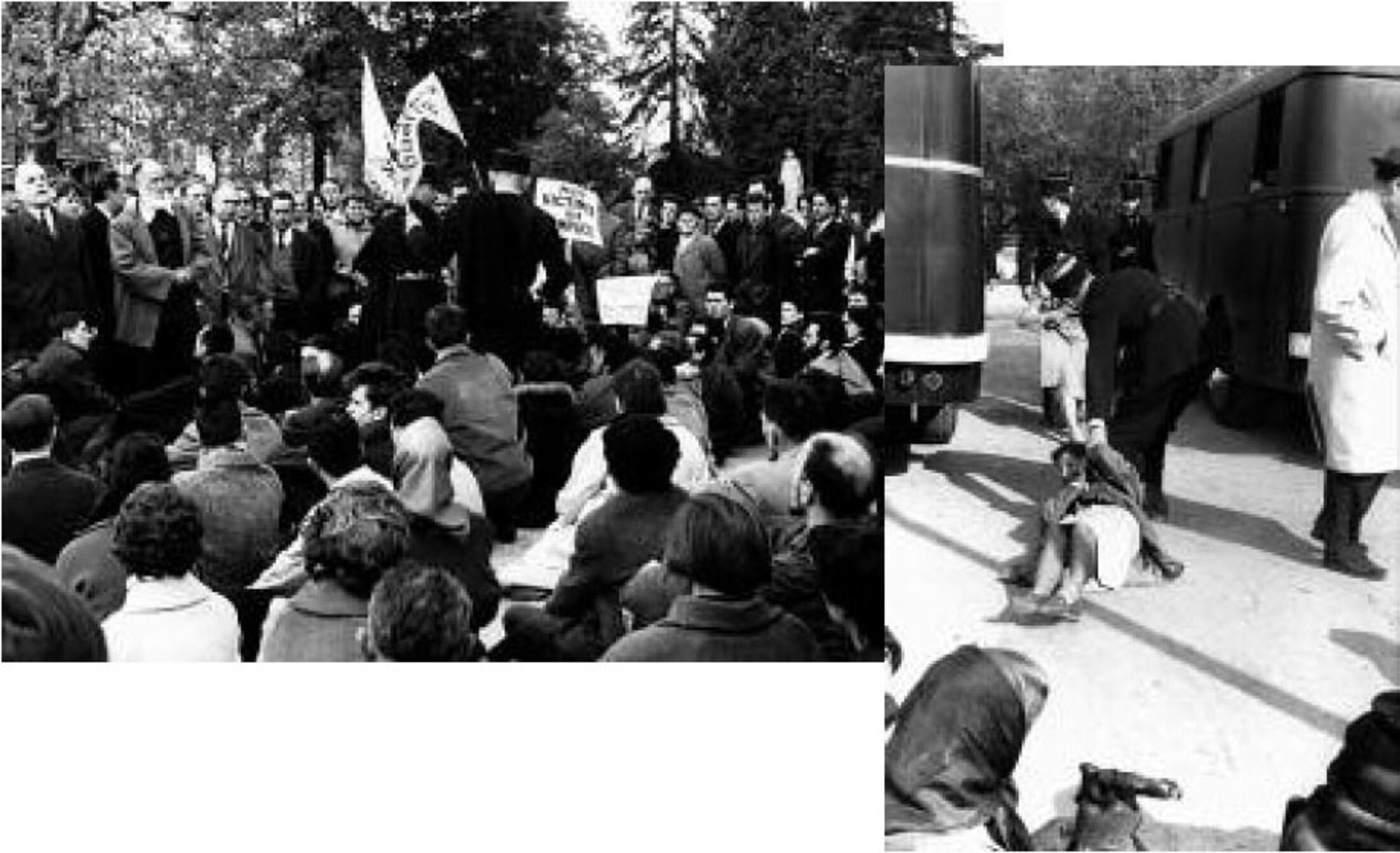 Le 8 février 1962, la manifestation organisée à Paris et qui est réprimée à Charonne (Paris 11e) est très différente, car elle se fait à l'appel d'un syndicat, d'un parti politique et de plusieurs organisations de jeunesse : elle regroupe donc des hommes, des femmes et des adolescent(e)s qui sont français(e)s, dont la future cinéaste Coline Serreau qui a alors quinze ans. Pour autant, cette manifestation prévue de la place de la République à la place de la Bastille n'est pas autorisée non plus.